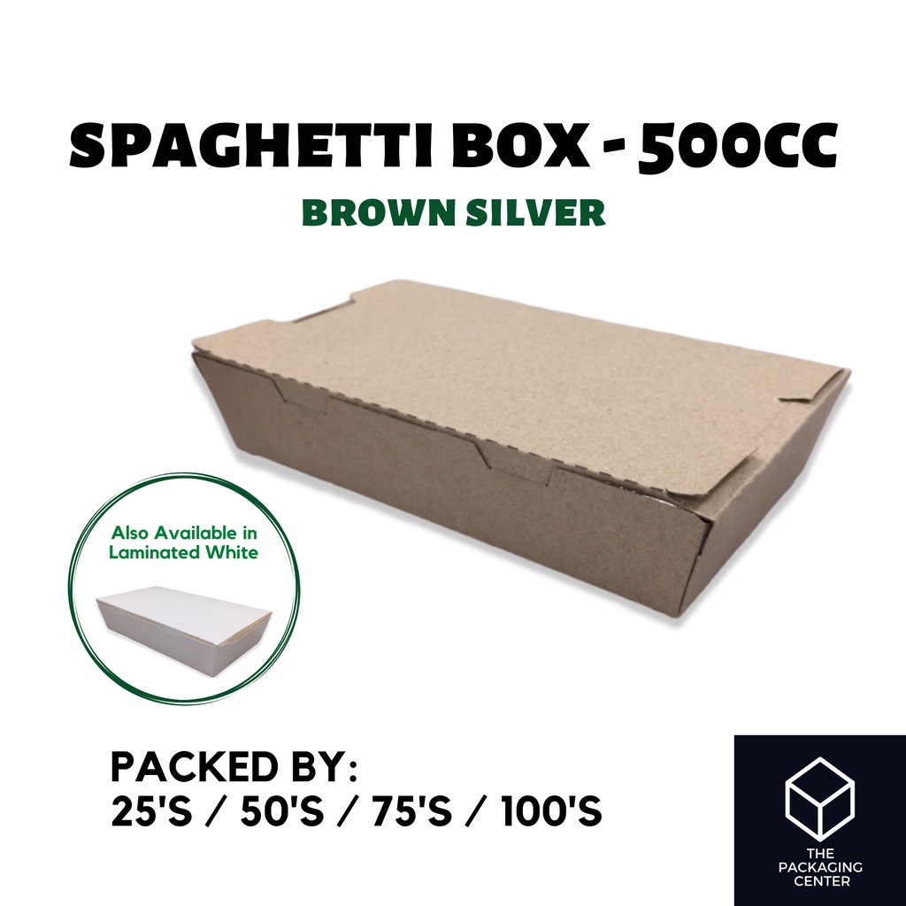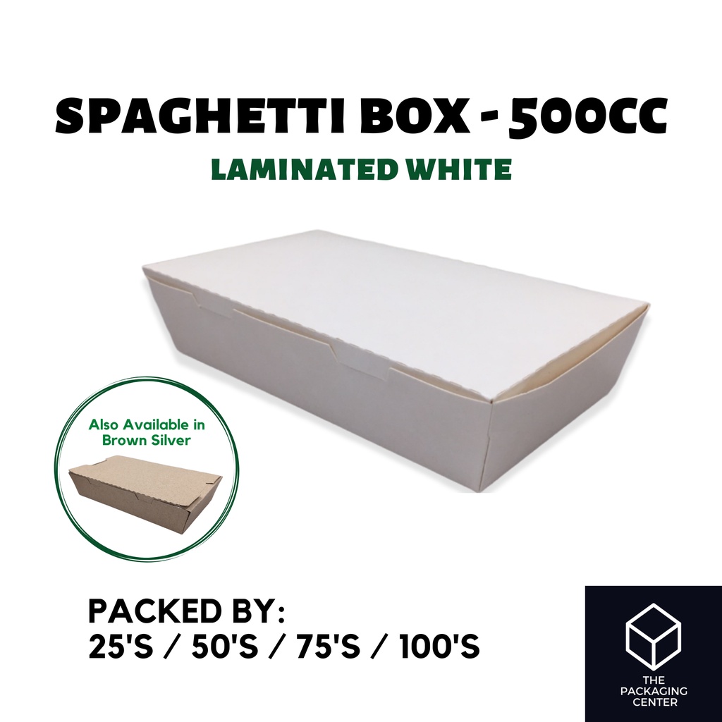 500cc Spaghetti Meal Box Laminated White / Brown Silver Lunch Meal Paper Box (25pcs - 100pcs)