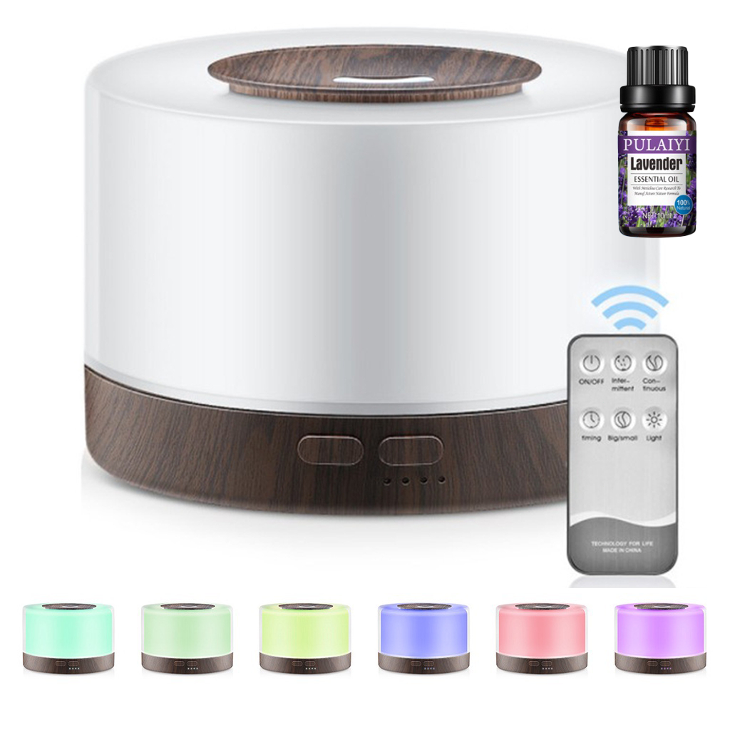 500ml 7 Color LED Lamp Air Aromatherapy Humidifier Ultrasonic Shallow Wood Grain With Helping Sleep