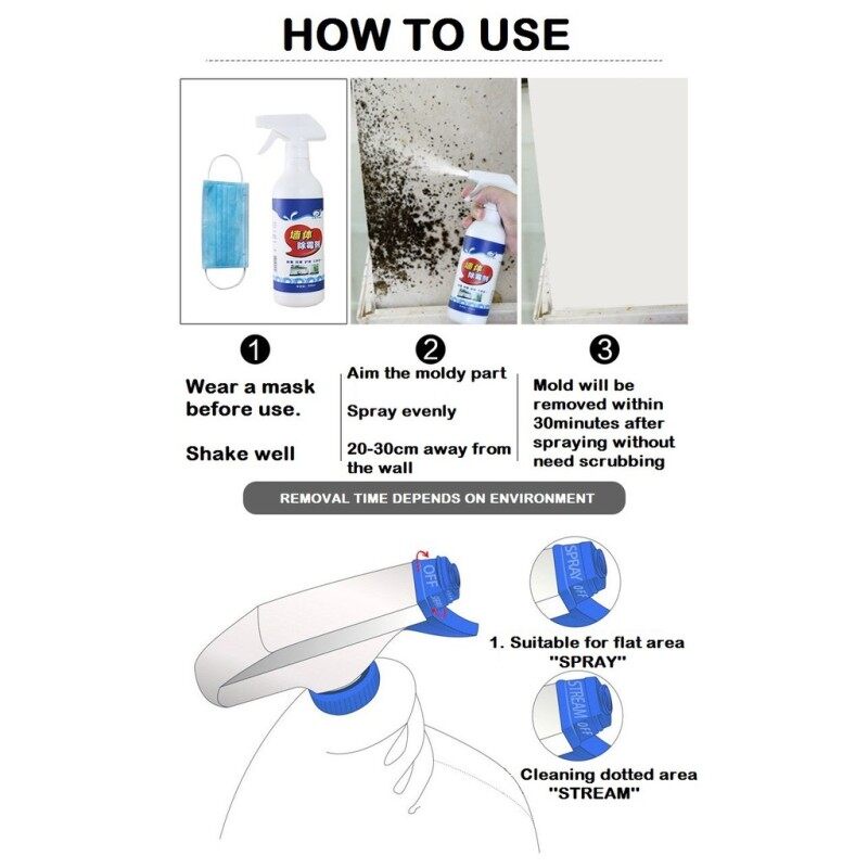 500ml Mold & Mildew Remover Spray Cleaner for Ceramic Tile Deep Wall Mold Mildew Stain Remover #COD