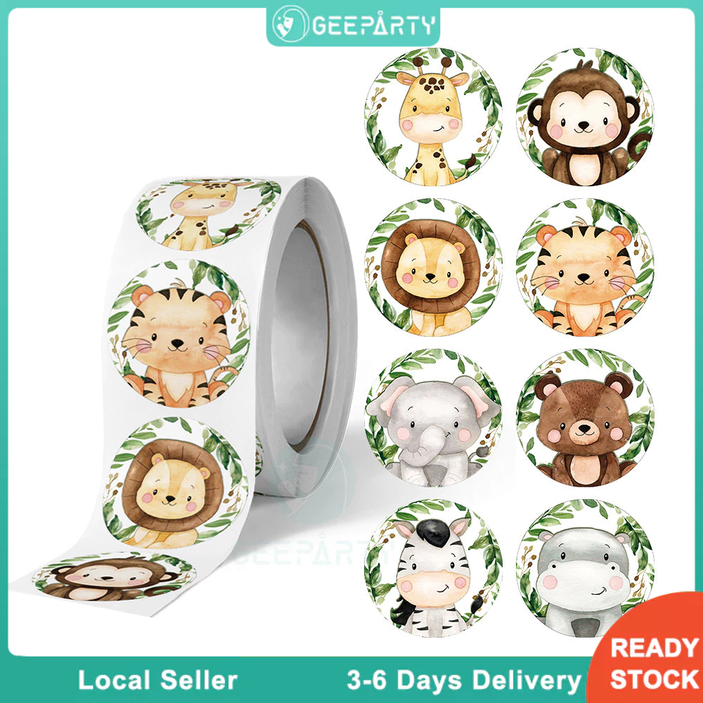 500pcs 8 Styles Jungle Animals Sticker Roll for Kids Safari Theme Party Decorations Birthday Gift