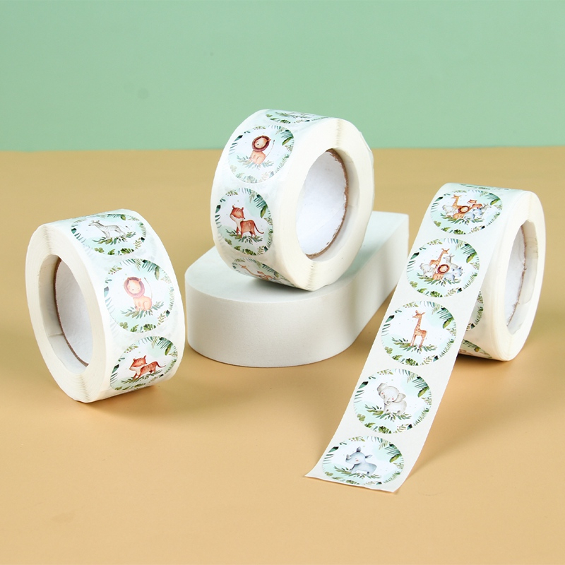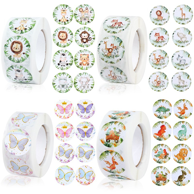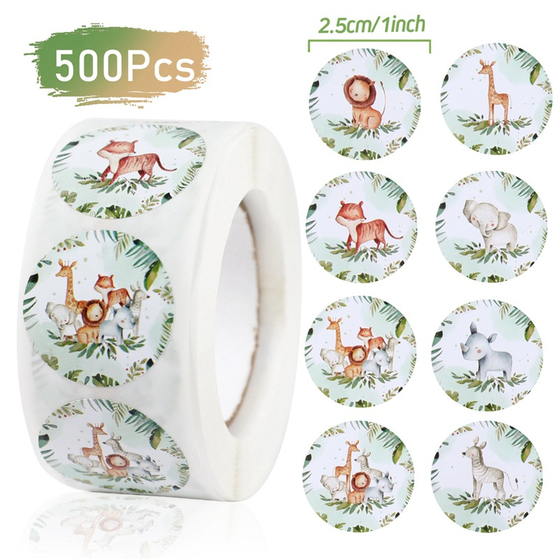 500pcs Safari Theme Round Cartoon Animal Sticker Gift Decoration Stickers for Kids Jungle Animal Children Sticker Label Stationery Thank You Sticker Paper Reward Sticker Home Decor