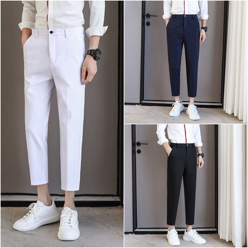 503# Summer Korean plain ankle Trousers Men's Slim Fit Pants for men formal office Pants