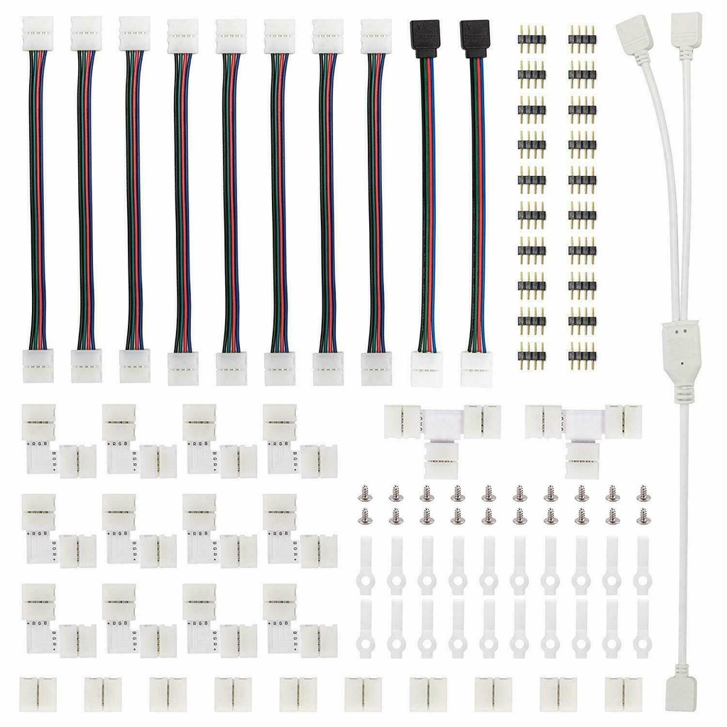 5050 4-Pin RGB LED Strip Light Connector Kit with T/L-Shaped Strip Jumpers Strip Clips Wire Connection Terminal Splice LED Strip