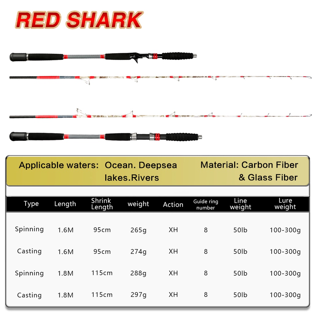 50LB 100-300g 1.6M 1.8M solid tip Heavy type Rod Surfing Fishing Rod Slow Jigging Rod Saltwater Rod Spinning Rod Baitcasting Fishing Rod Deepsea Boat Rod Telescopic Rod