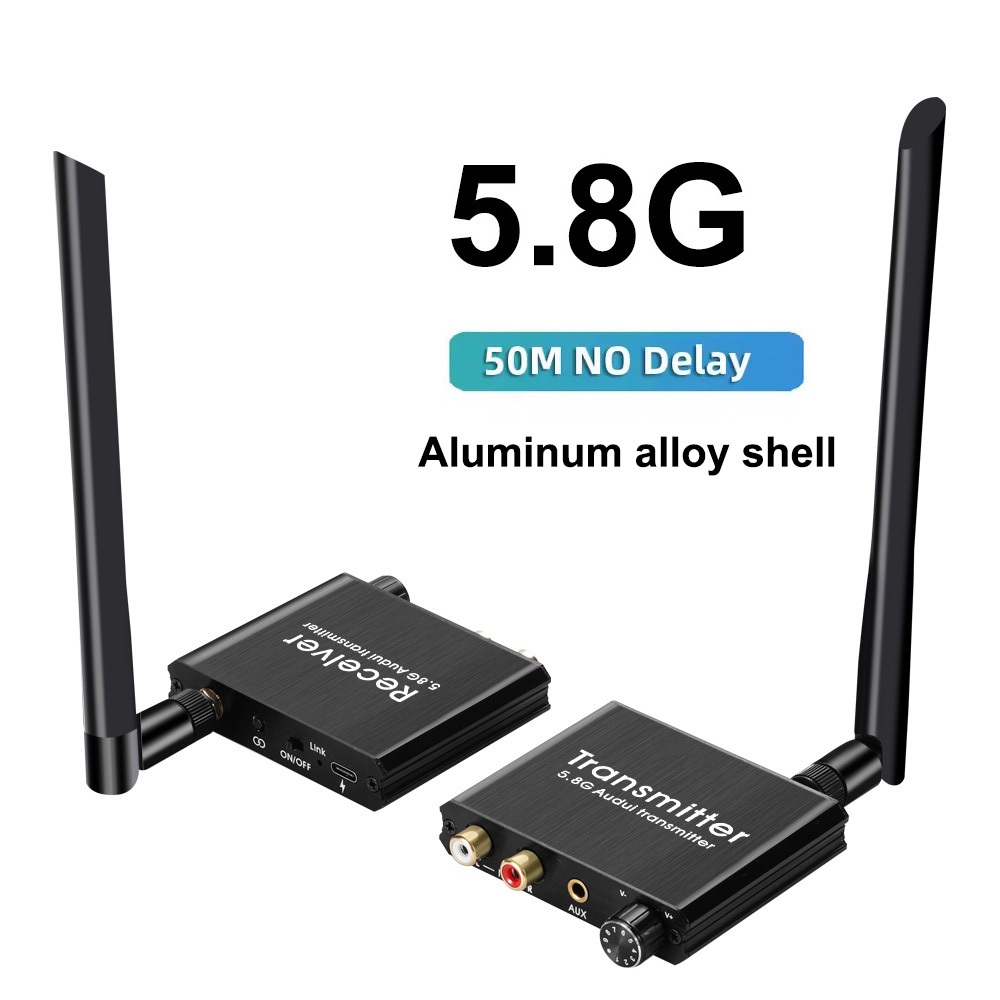 50M 5.8G Wireless Audio Sender Transmitter and Receiver 2.4G Wireless Audio Adapter with RCA 3.5MM R/L Port Volume Adjust Control for Audio Power Amplifier Mixer