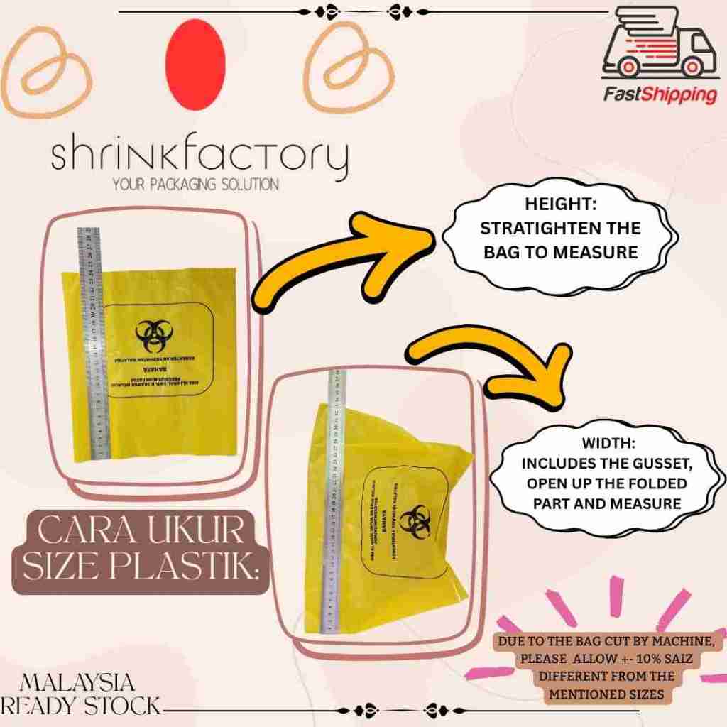 50PCS/100PCS Biohazard Bag for Clinical Waste Yellow Plastic Bag (5L/10L/30L/100L) 100[ PIECES ]