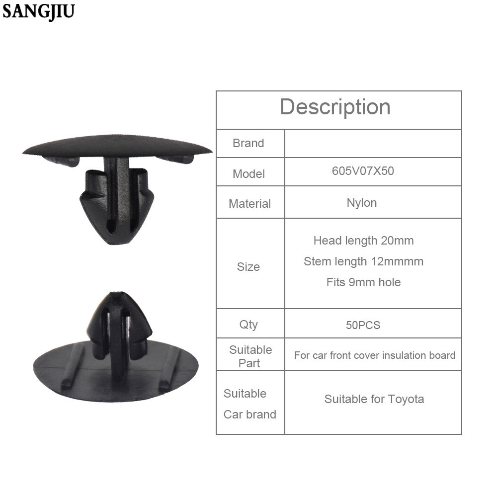 50PCS 9mm Hole Nylon Car Fastener Engine Cover Lining Insulated Cotton Shield Retainers Rivets Clips