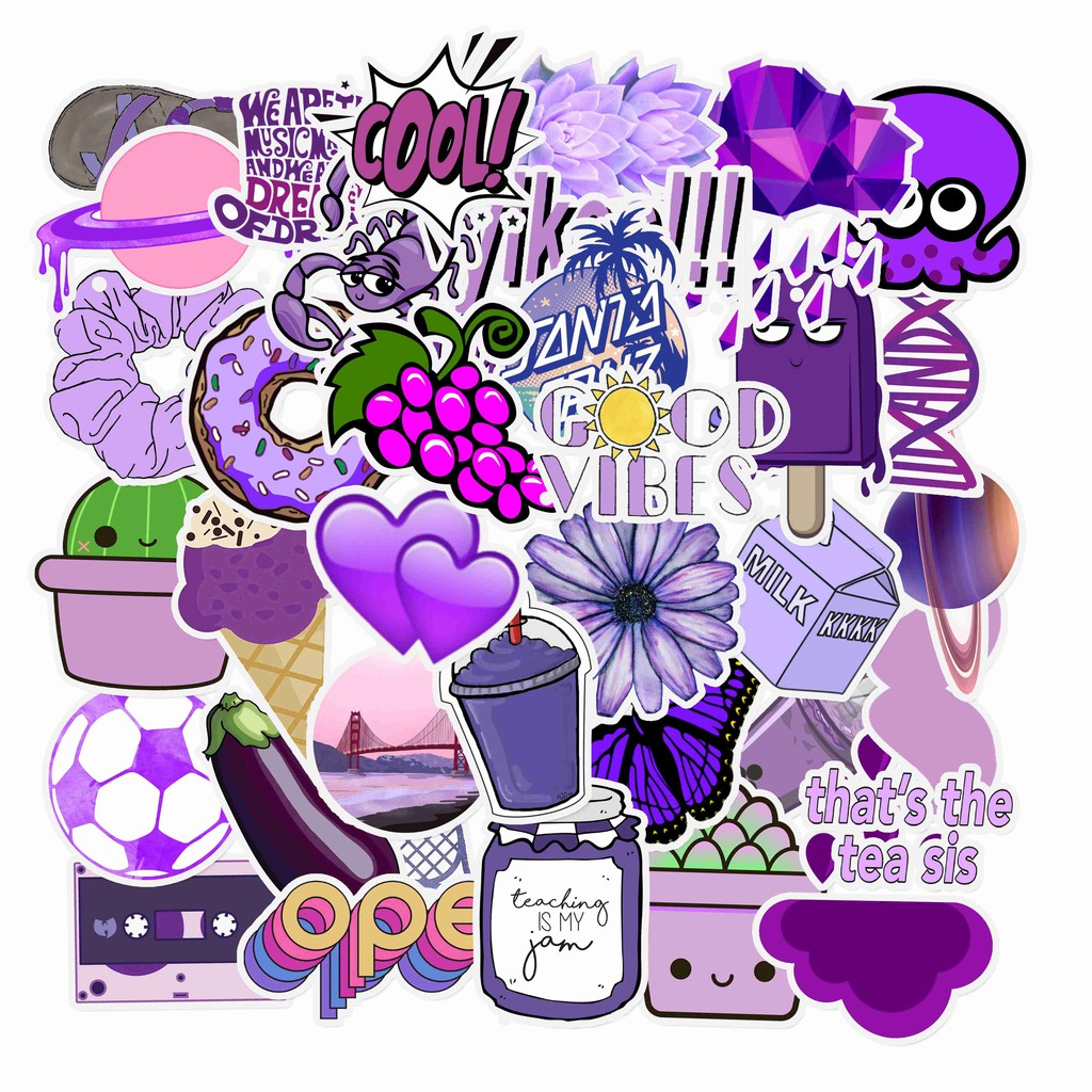 50PCS Cartoon Purple Waterproof Sticker Skateboarding Snowboard Retro Vinyl Sticker Graffiti Notebook Sticker
