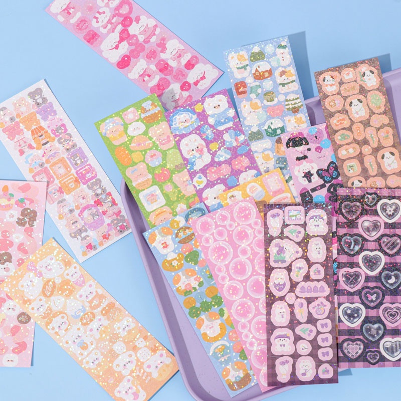 50PCS Cute Stickers Kawaii Cartoon Laser Sticker Suitable for Kid Sticker Plate DIY Popular Campus Students Toys Decoration Stationery