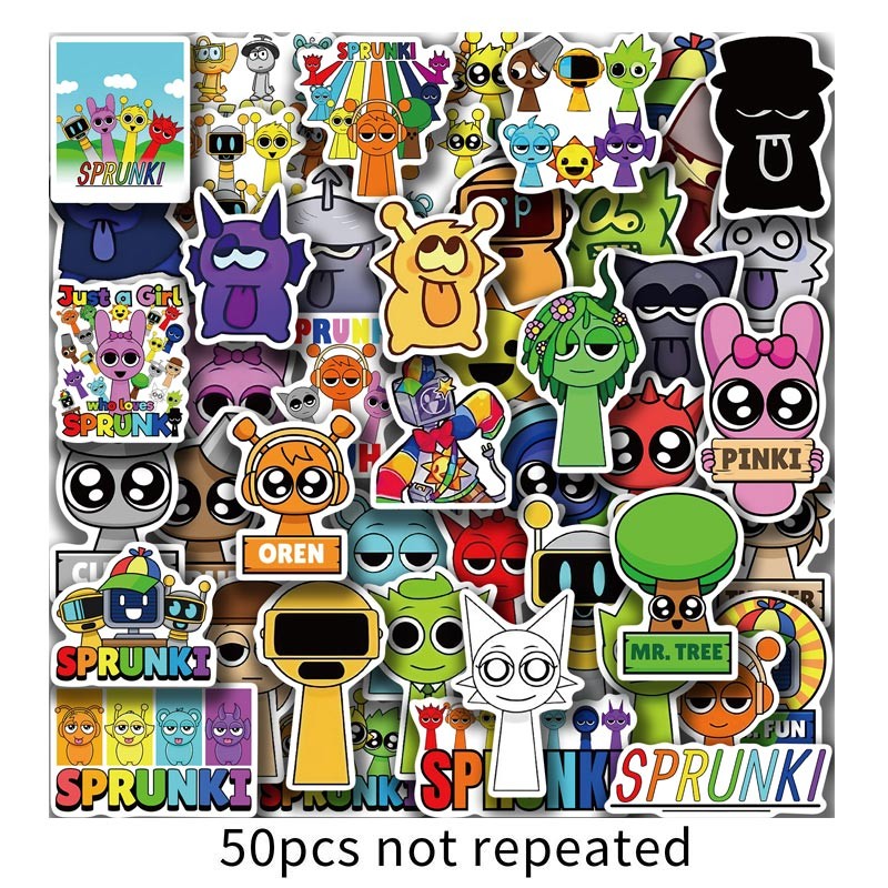 50PCS Game Incredibox Stickers Sprunki Vinyl Waterproof DIY For Phone Laptop Car Cartoon Sticker