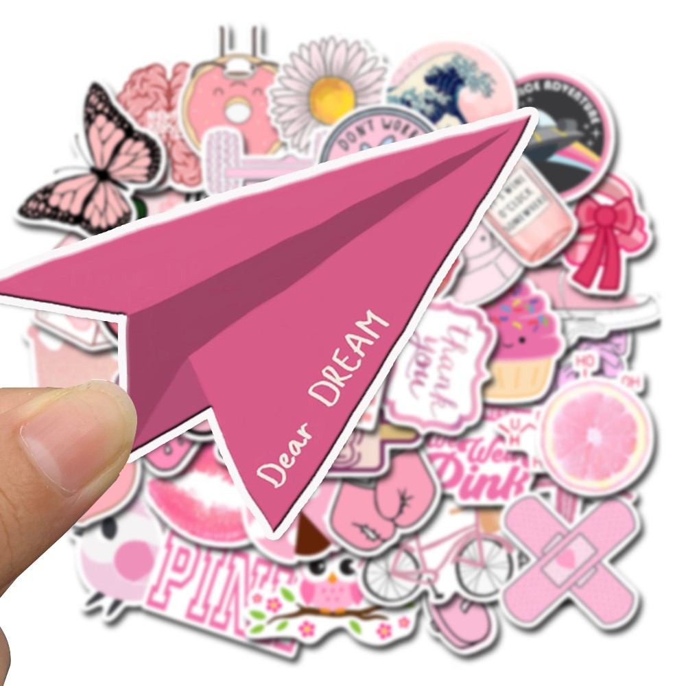 50PCS Pink 02 Waterproof Sticker Skateboarding Snowboard Retro Vinyl Sticker Graffiti Notebook Sticker
