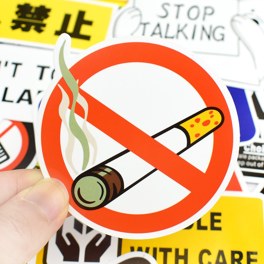 50PCS Sign Stickers Warning Reminder Banning Symbol Waterproof Decal Sticker Laptop Suitcase Entrance Bicycle Fridge Car