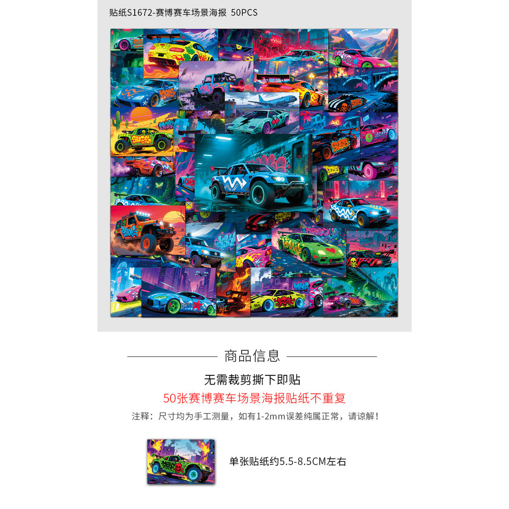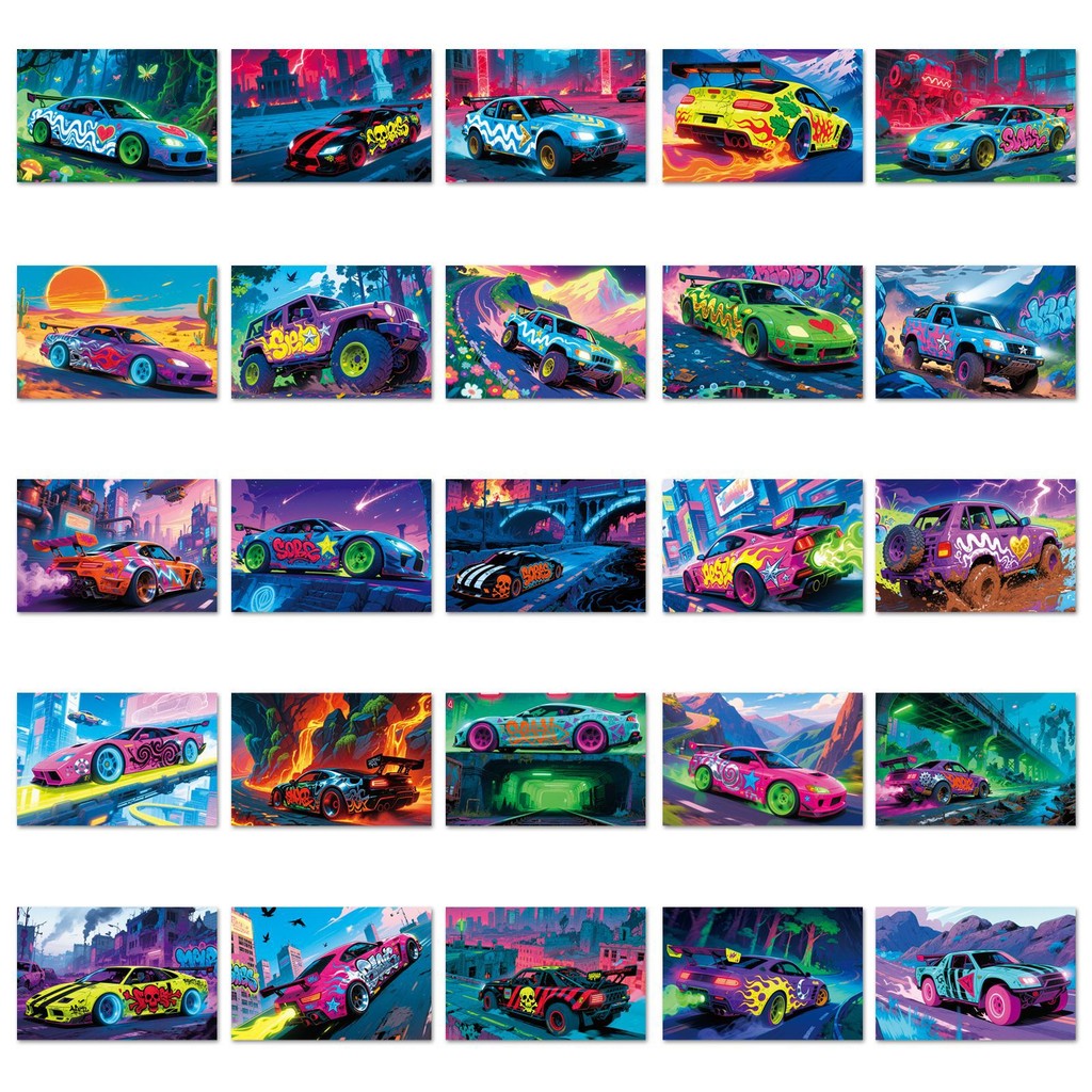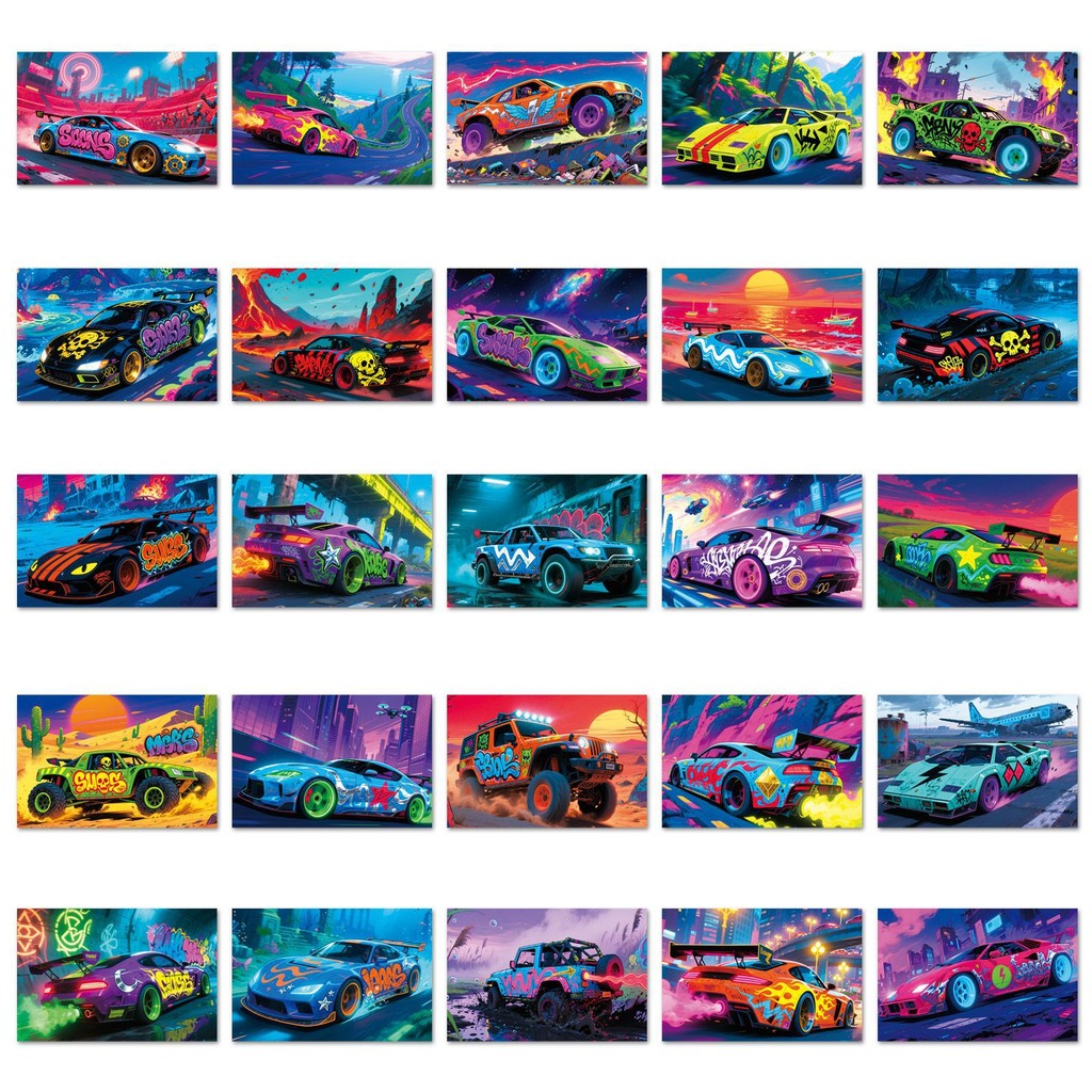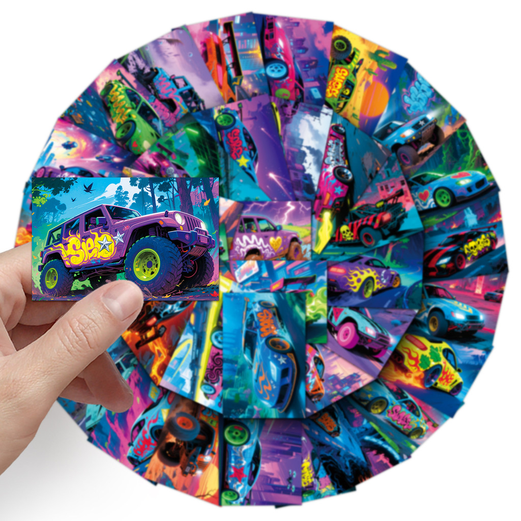 50PCS Waterproof Cyber Racing Stickers - Colorful Neon Decals for Helmet, Laptop & Guka