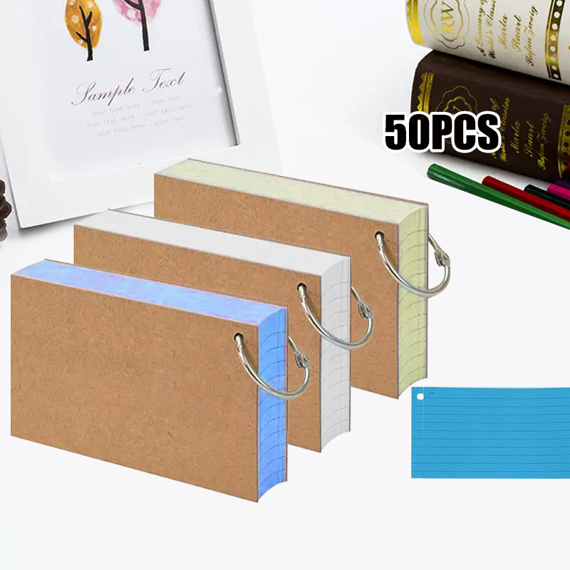 50Pcs Binder Memo Book Kraft Paper Binder Ring Flip Cards With Cover Double-sided Revision Cards