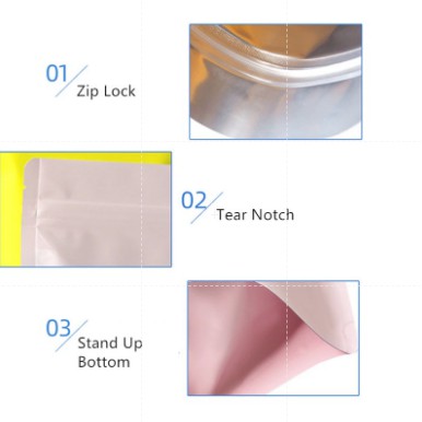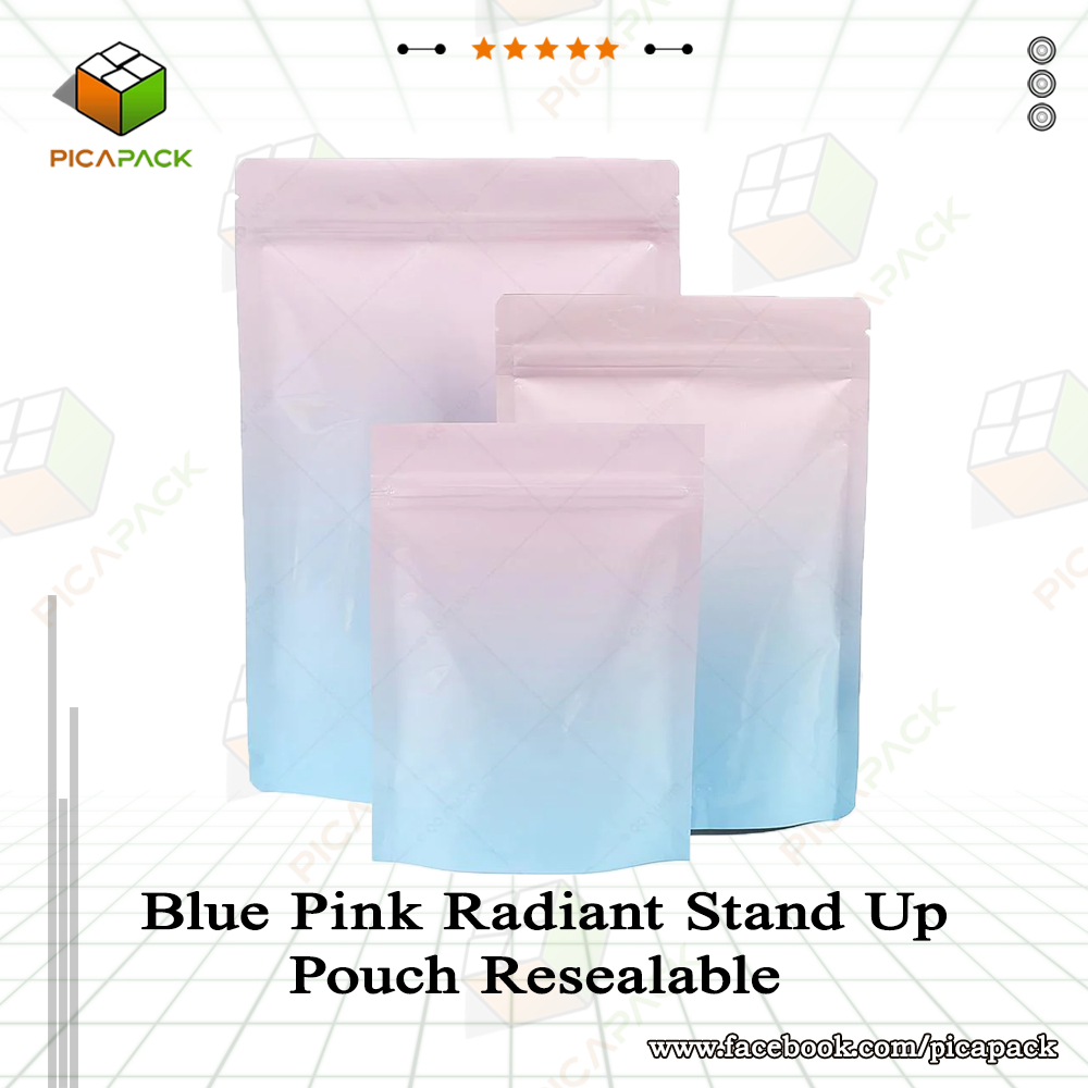50Pcs Blue Pink Stand Up pouch with Resealable POuch for soap Beans Chips Dried Food Packaging