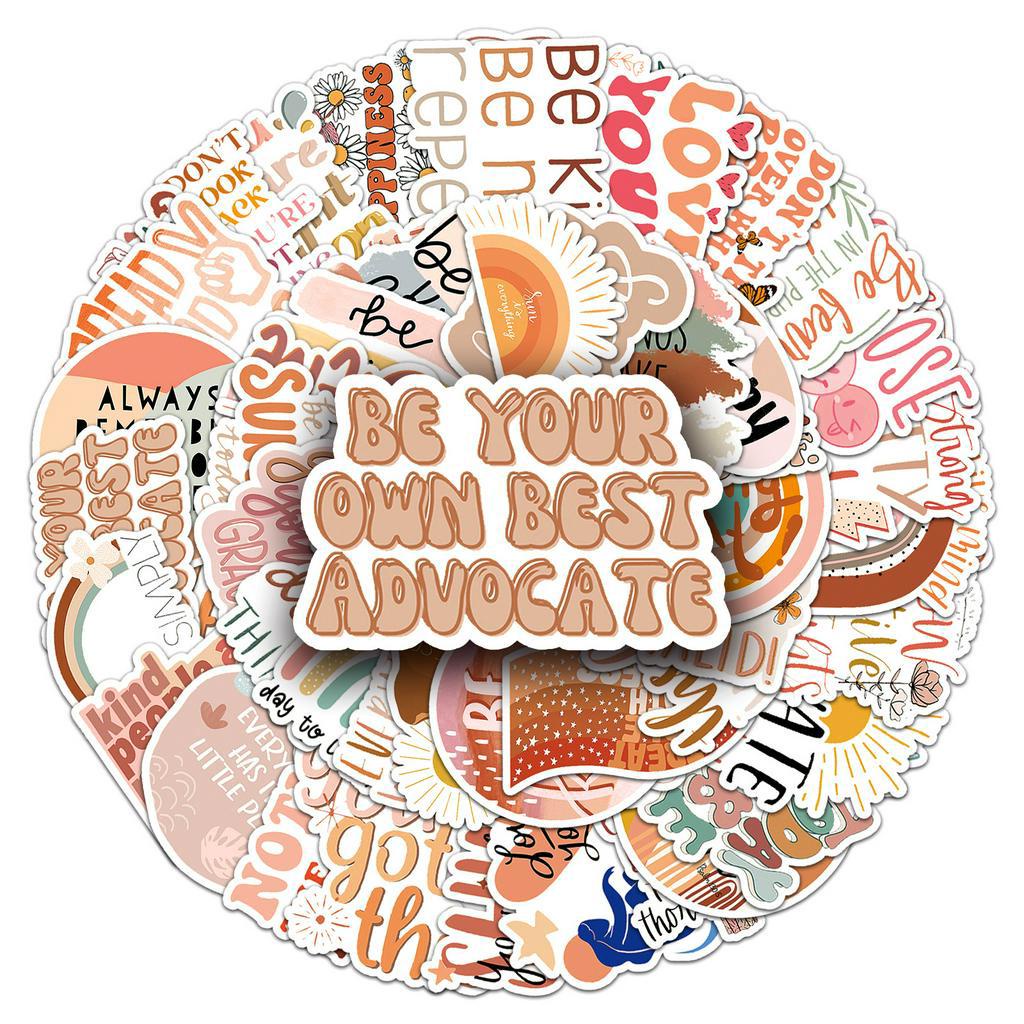 50Pcs Bohemian Inspirational English Stickers for Suitcases Mobile Phone Cases Laptop Helmet Skateboard Waterproof Decorative Stickers DIY Creative