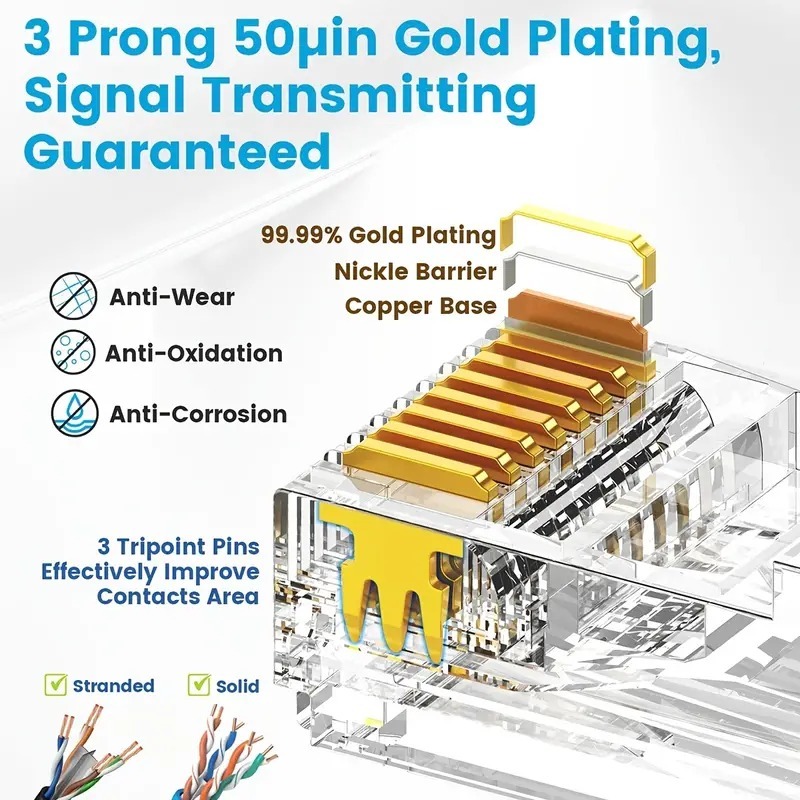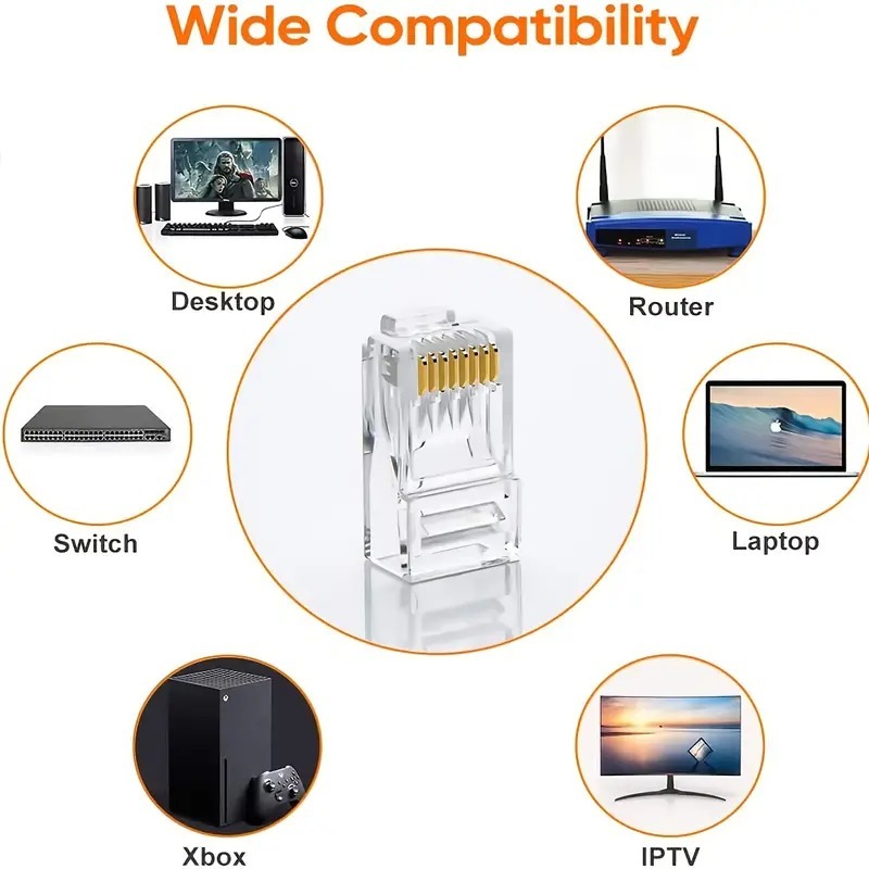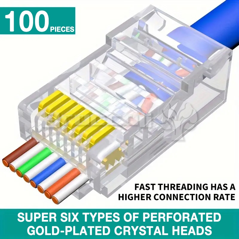 100Pcs CAT6 CAT5 RJ45 Network Connector Gigabit Crystal Head 8P8C modular
