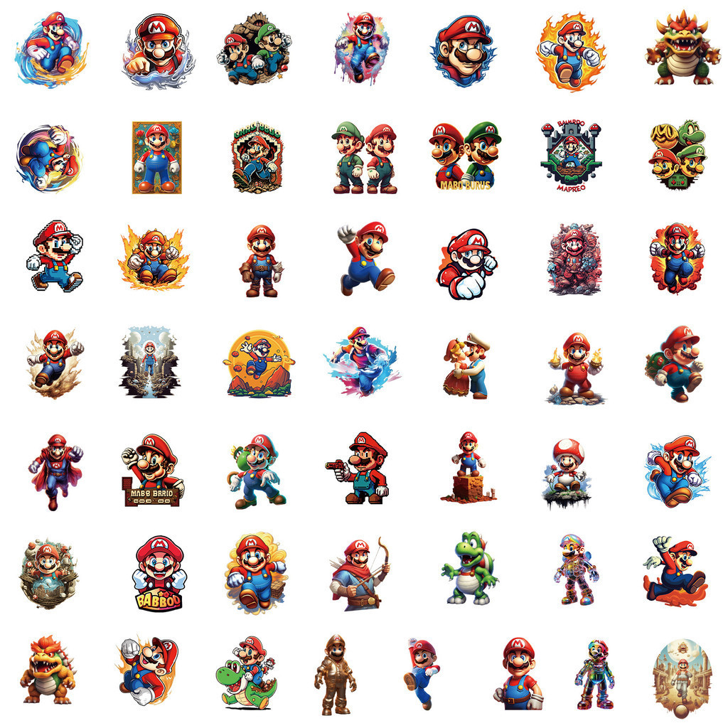 50Pcs Cartoon Game Mario Series Graffiti Stickers for Suitcases Mobile Phone Cases Laptop Helmet Skateboard Waterproof Decorative Stickers DIY Creative