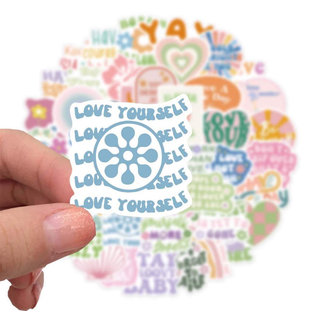 50Pcs Danish Pastel Positive Slang Series Stickers Waterproof DIY Fashion Decals Doodle stickers