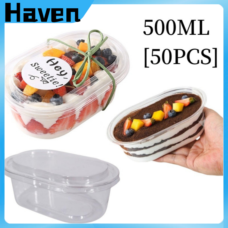 50Pcs Dessert Container 500ML Clear Oval Deli Container for Salad, Mousse Cake, Pudding, Desserts