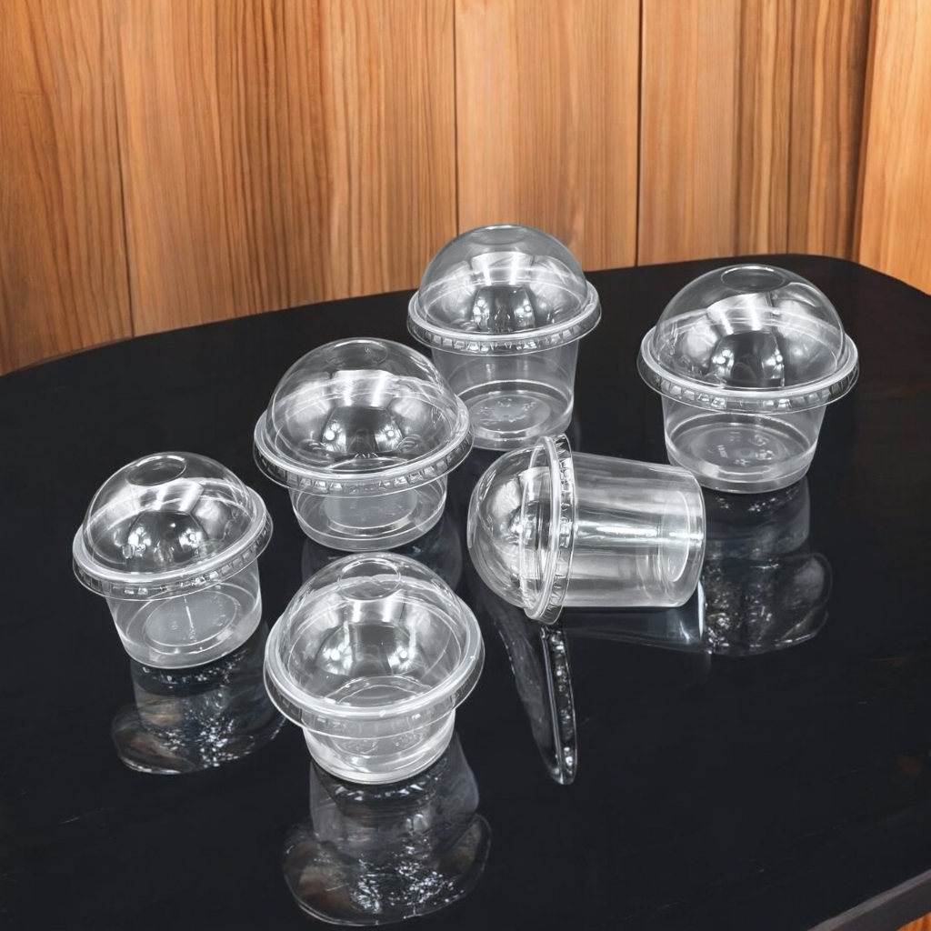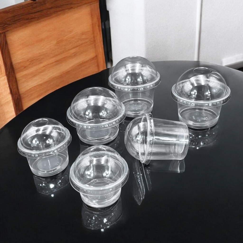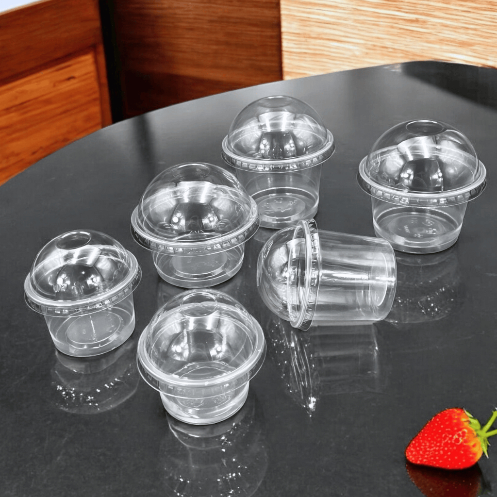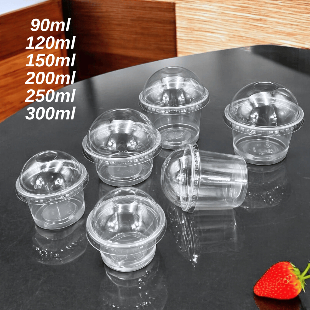 50Pcs Dessert Cup With Dome Lid Transparent Plastic Cups Dessert Pudding Mousse Cake Container Cup