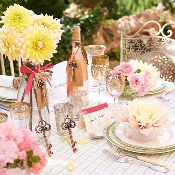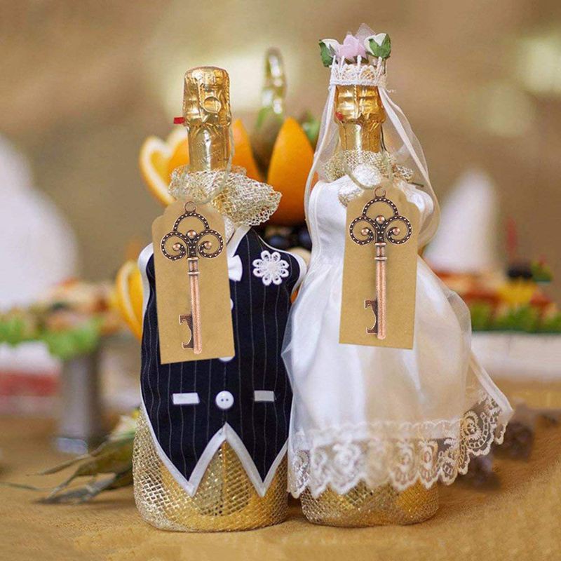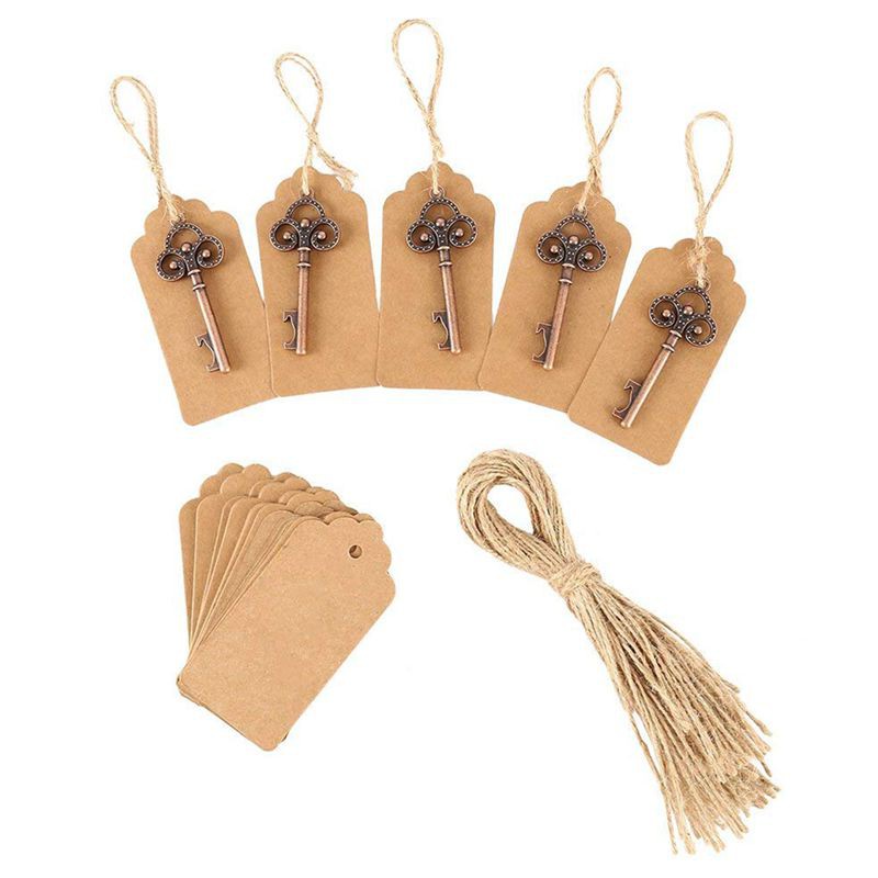 50Pcs Key Bottle Opener with Tag Cards Wedding Favour Skeleton for Party Rustic Anniversary Souvenir