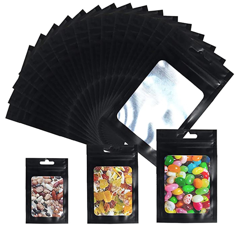 50Pcs/Pack BLACK Matte Zip lock Plastic Bag Aluminum Foil Food Pouch Small Water Proof pouch