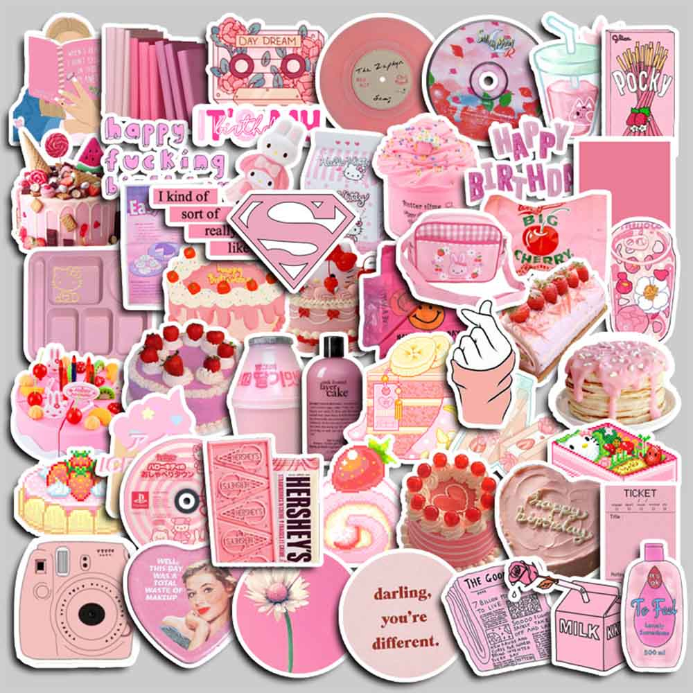 50Pcs Pink Preppy Style Stickers Laptop Computer Motorcycle Mobile Phone Luggage Decal for Teens