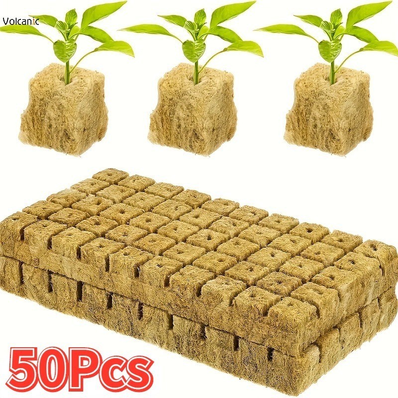 50Pcs Plant Starter Grow Plug Hydroponic Grow Media Plant Rock Wool Plug Soilless Substrate Seedling Block Gardening Tool