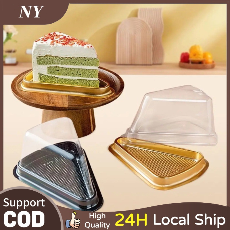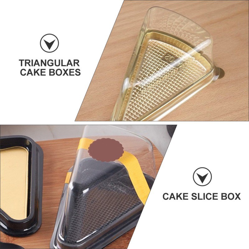50Pcs Plastic Cake Slice Boxes Triangular Clear Lid Cheesecakes Disposable Dessert Containers Bakery
