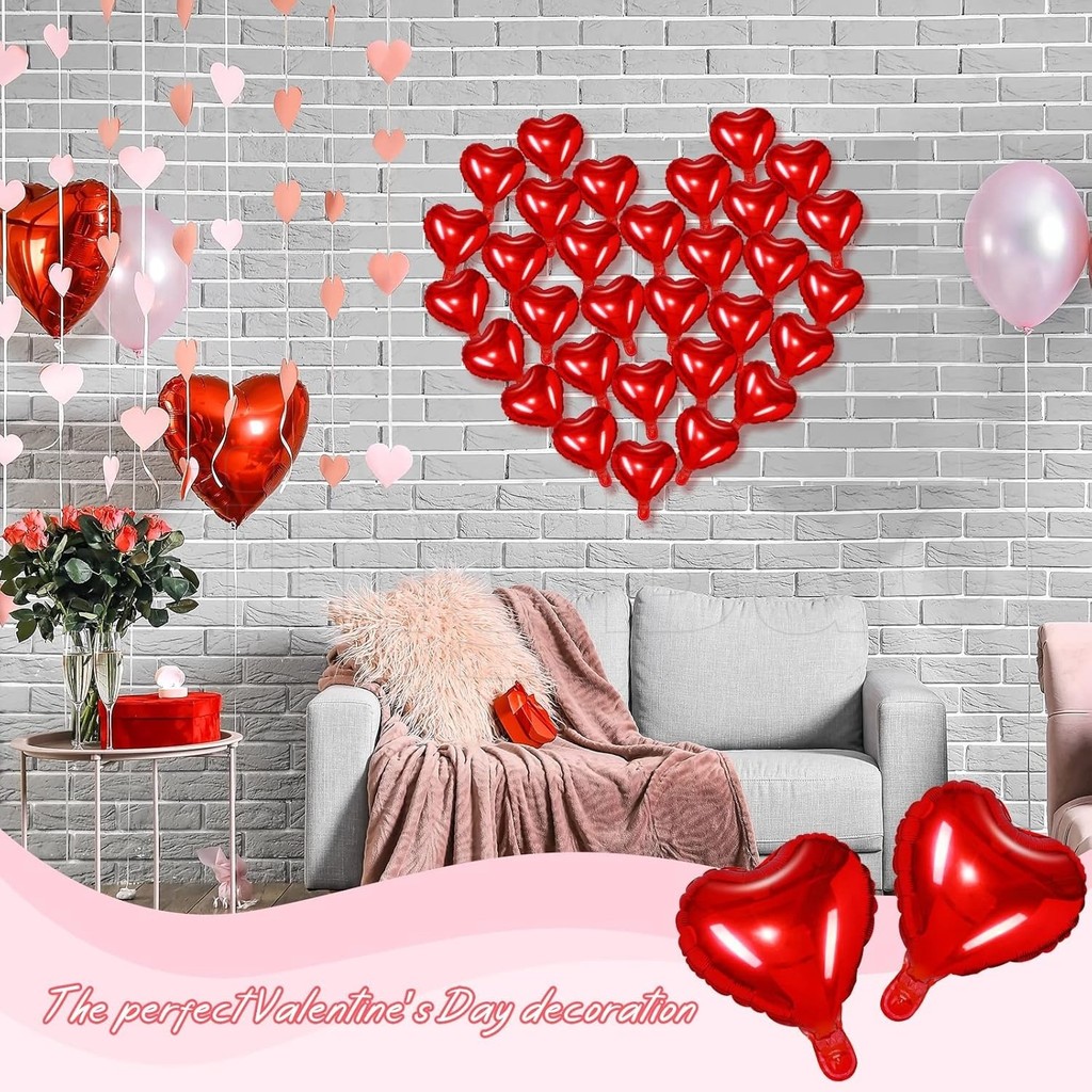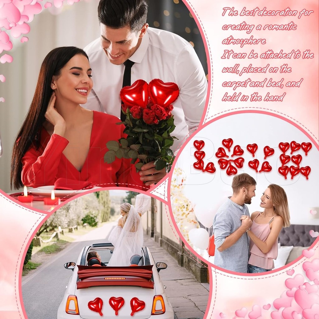 50Pcs Red Heart Foil Balloons, 5inch Mini Red Heart Mylar Balloons for Valentine's Day Wedding Birthday Proposal Party Decoration