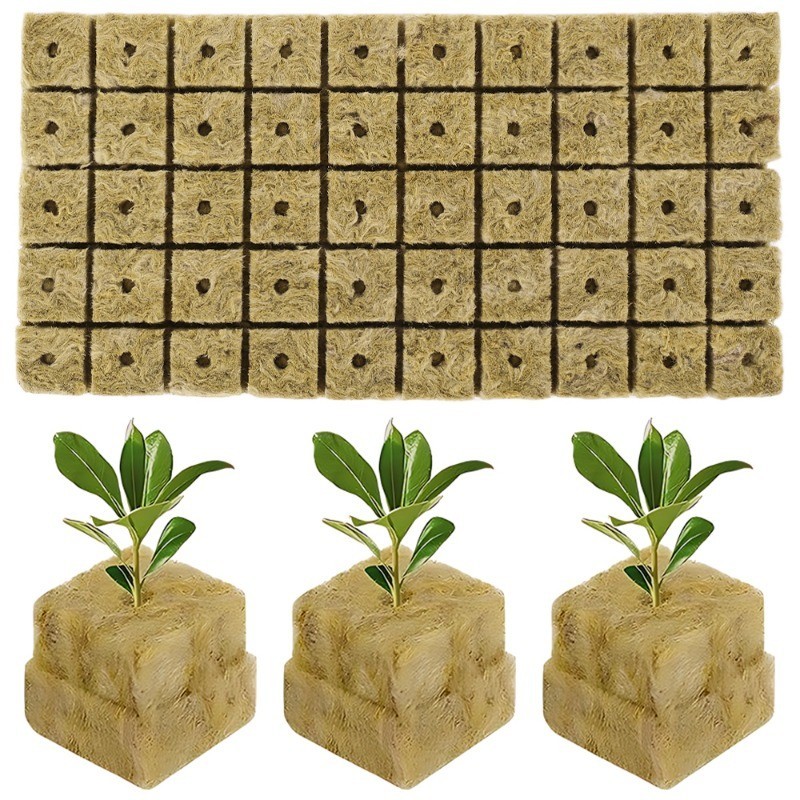 50Pcs/Set Hydroponic Grow Media Rockwool Plant Soilless Substrate Seeded Plug Seedling Blocks