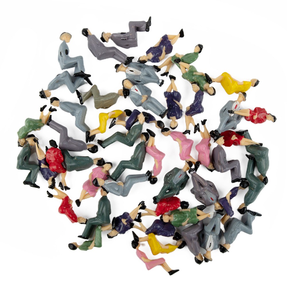 50 Pcs 1:32 Sitting Miniature People Figures – Mixed Painted Plastic Model Set for Sand Table Diorama Display Scene Accessories