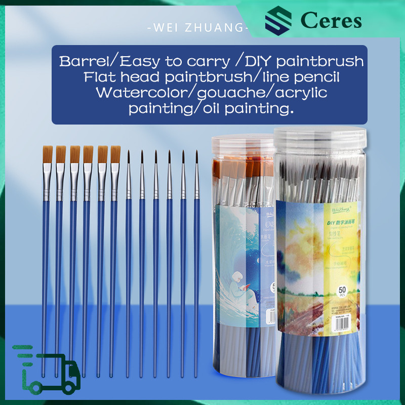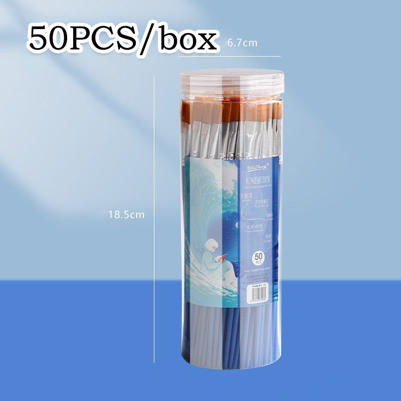 50Pcs/box Paint Brush Drawing Watercolor Paint Brushes Artist Flat Paint Brushes Set
