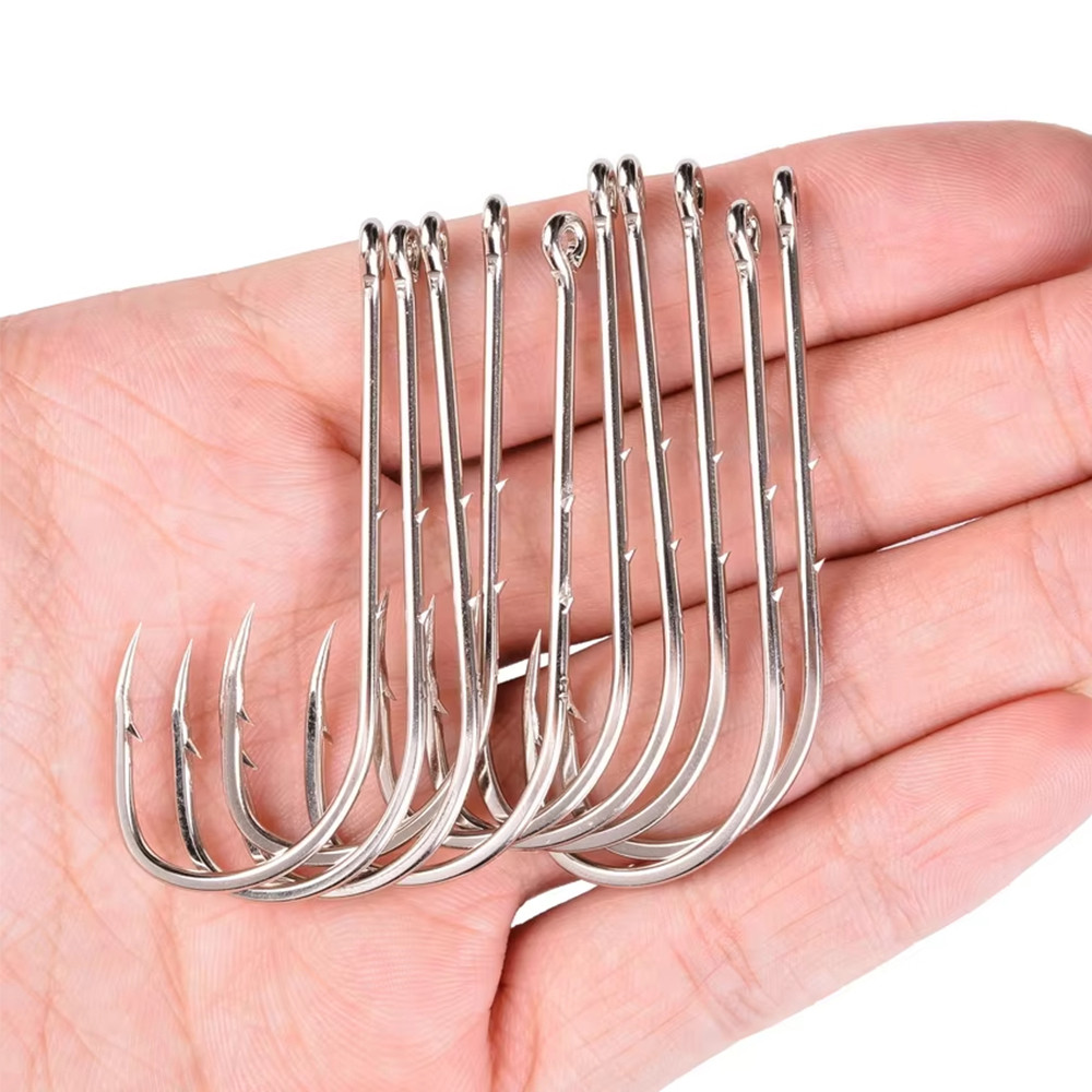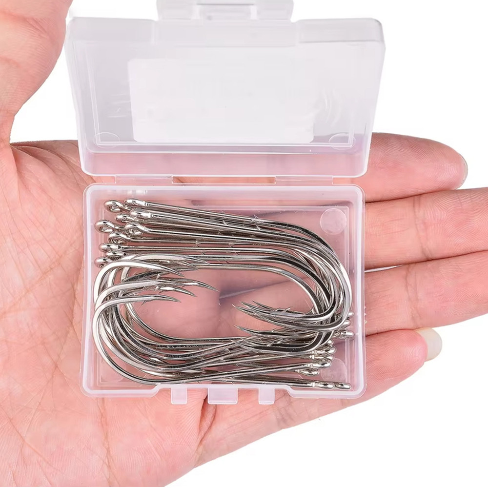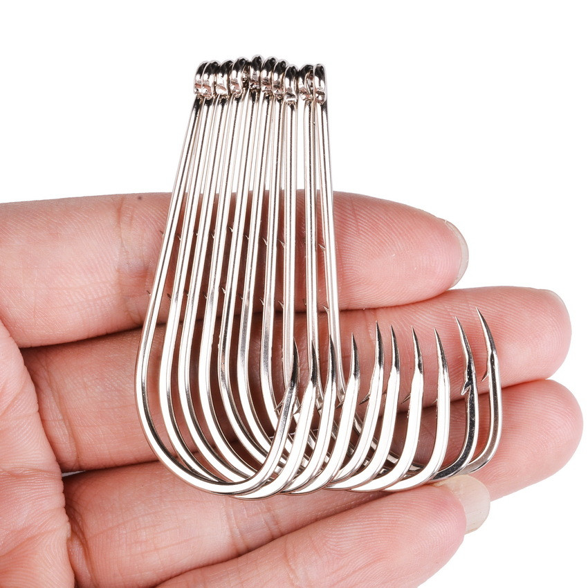 50Pcs/boxed High Carbon Steel Fishing Hook Sharp Fishhook Long Handled Worm Hooks Single Circle Hook Fishing Tackle