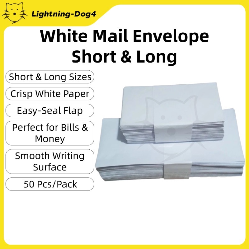 50Pcs/pack White Mail Envelope Long/Short SCHOOL OFFICE SUPPLIES