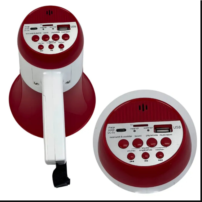 50W Handheld Megaphone Speaker with Siren, Record, Alarm and Bluetooth USB Type-C Charging TF Card