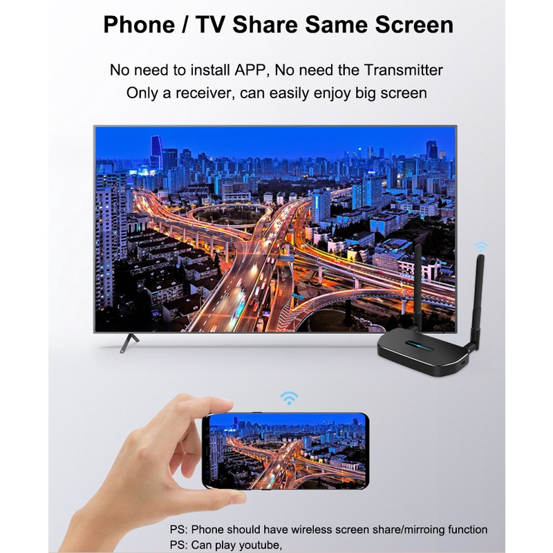 50m Wireless HDMI Video Transmitter and Receiver Extender Display Adapter Dongle Screen Share 1080p TX RX Many To One Switch Phone DVD Laptop Notebook PC To TV Monitor Projector