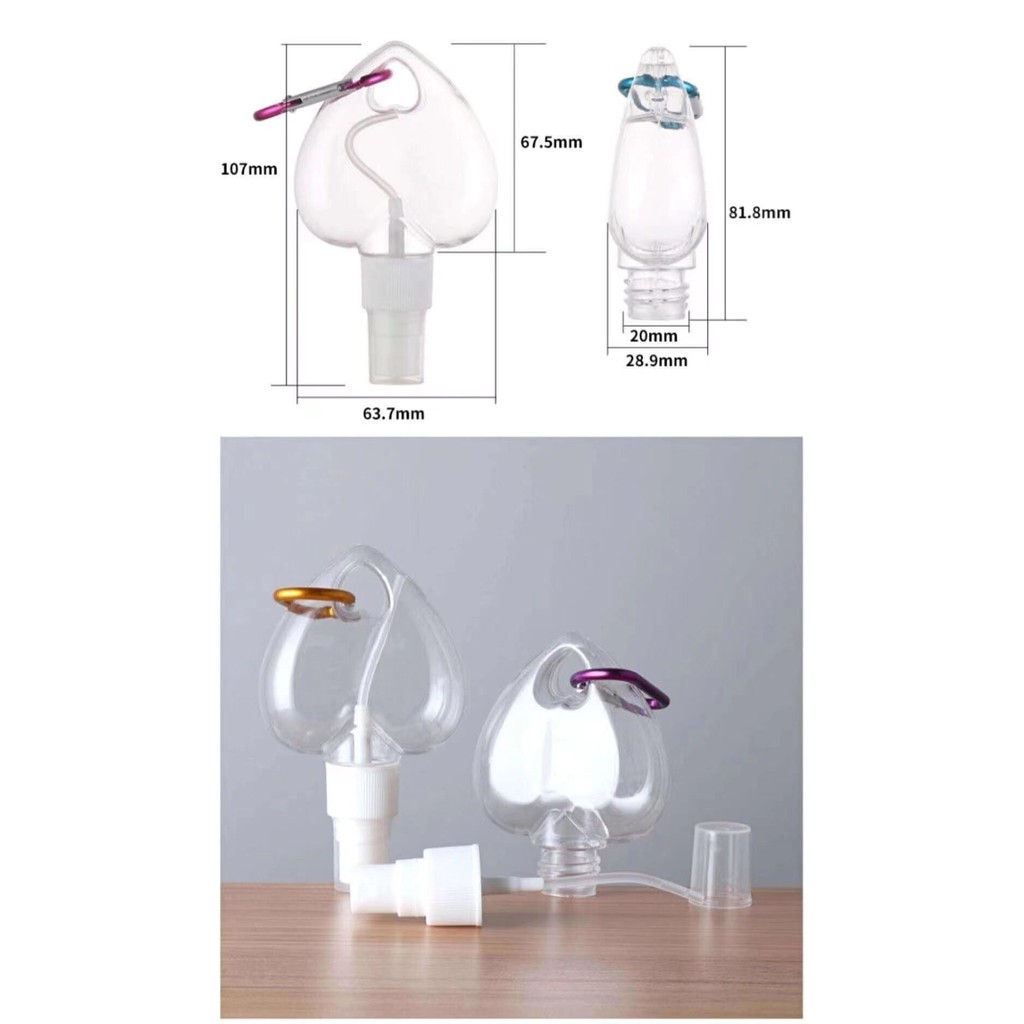 50ml Heart Shape Spray Bottle with Keychain Portable Alcohol Perfume Heart-Shaped Bottle Emp