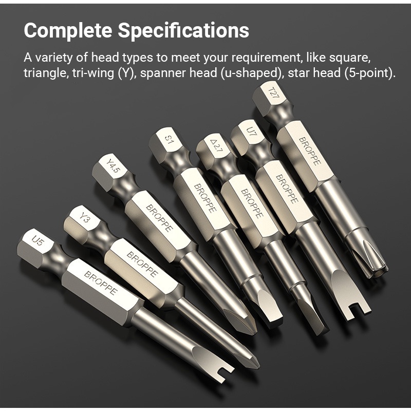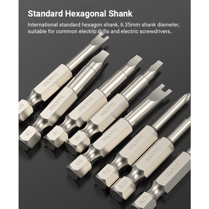 50mm Magnetic Specialty Screwdriver Bits 1/4" Hex Shank, Triwing Square Triangle Spanner U-shaped Tri-wing Torx Star 5-point Head Screw Driver S2 Security Tamper Proof Bit