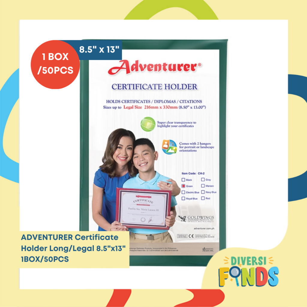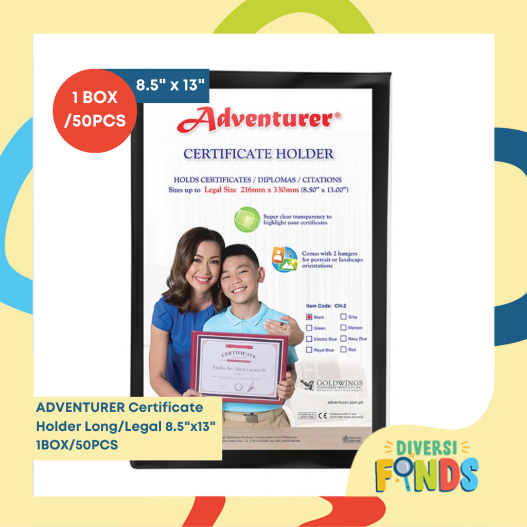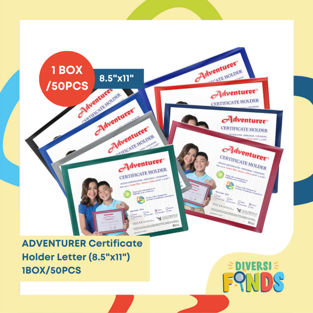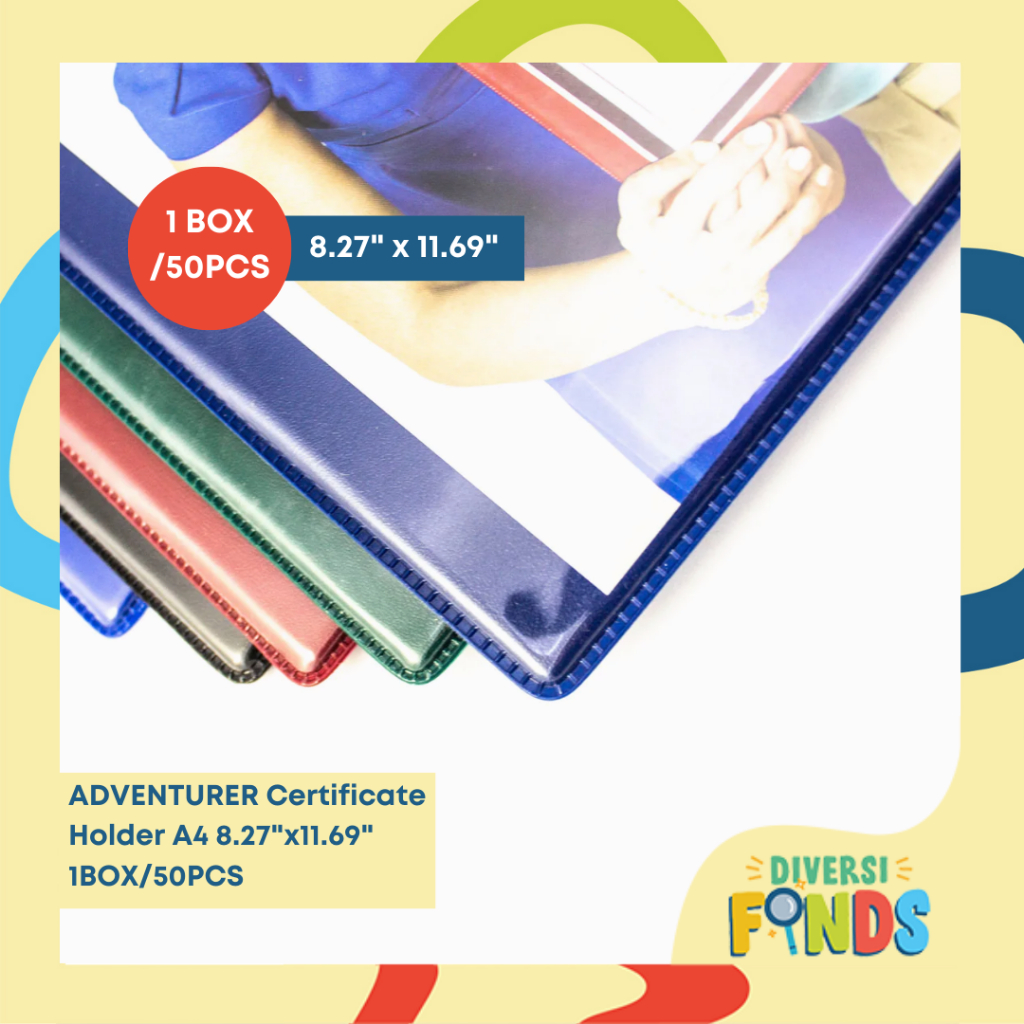 50pcs (1bx) Adventurer Certificate Holder Letter, A4 and Long/Legal Size Asstd Colors