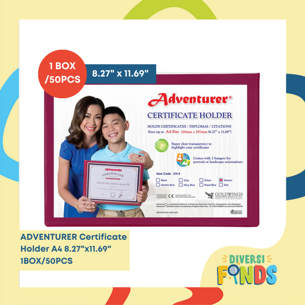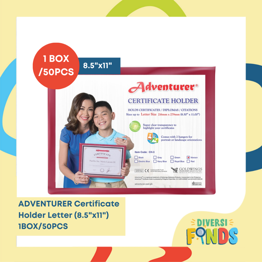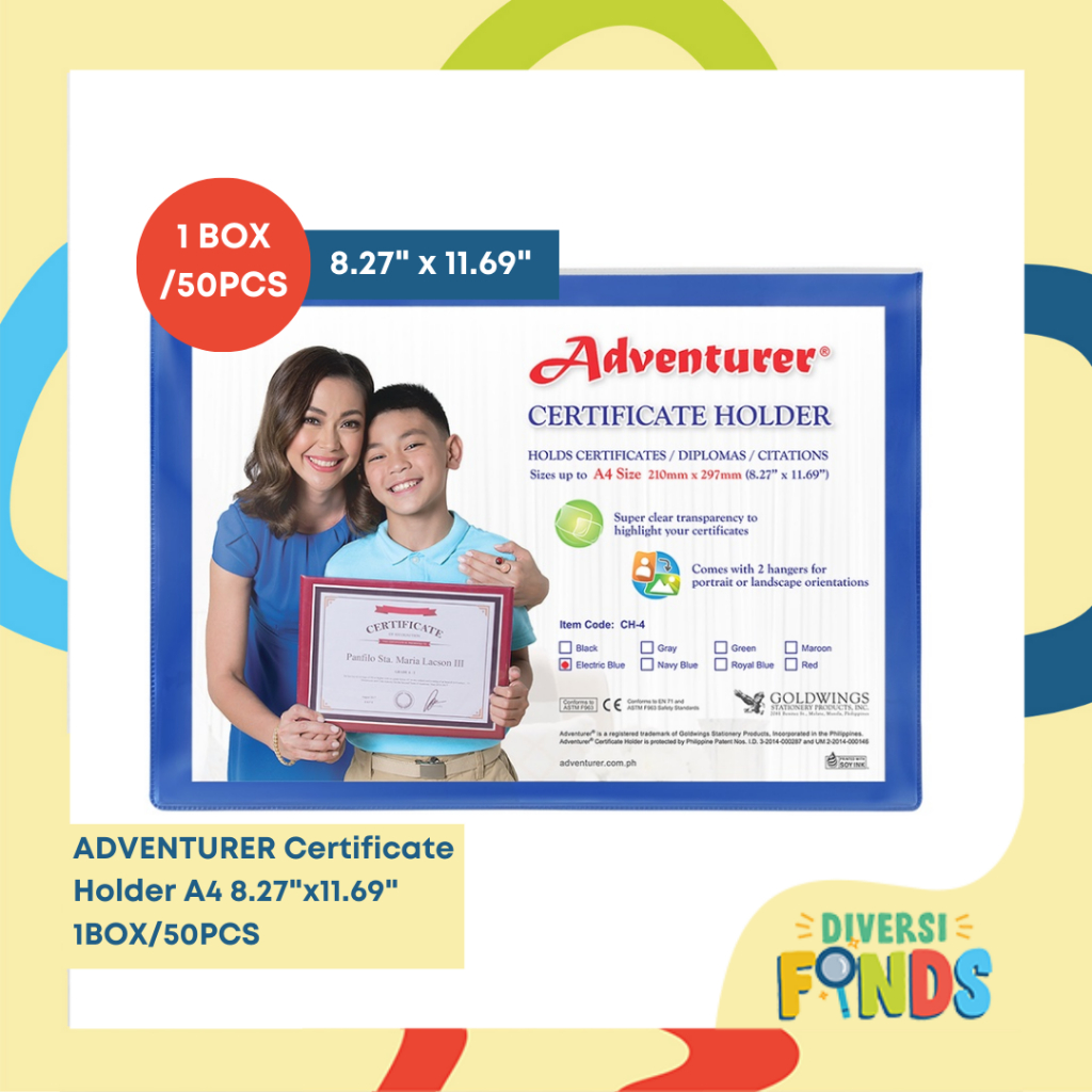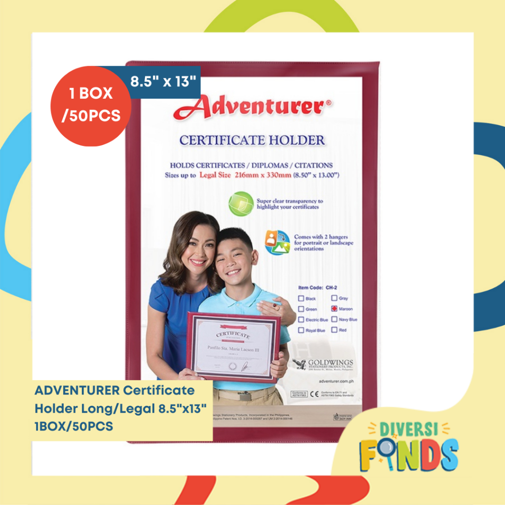 50pcs (1bx) Adventurer Certificate Holder Letter, A4 and Long/Legal Size Asstd Colors