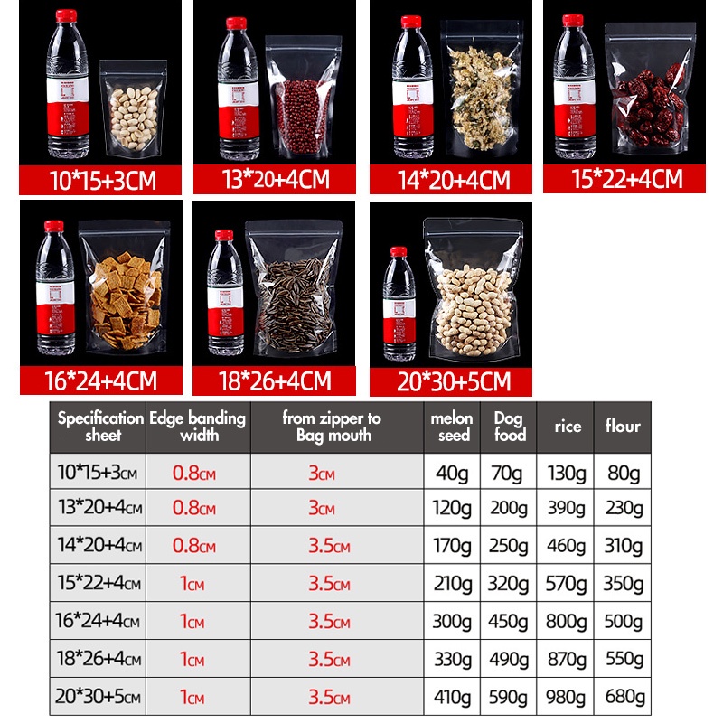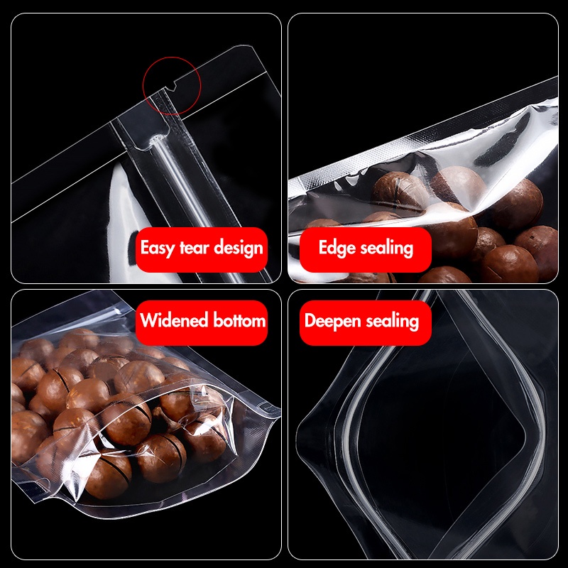 50pcs/100pcs Full Clear Stand Up Pouch Packaging Bag Resealable Pouch Resealable Plastic #COD