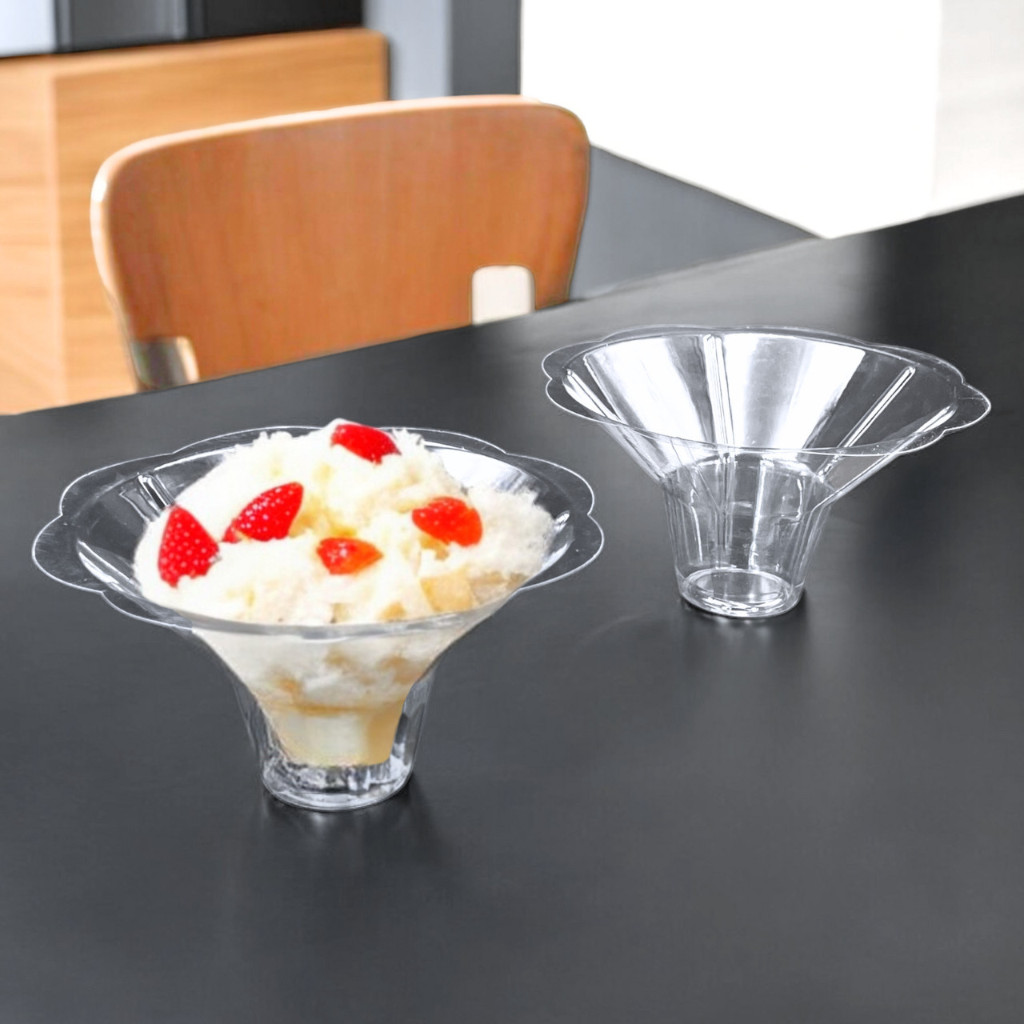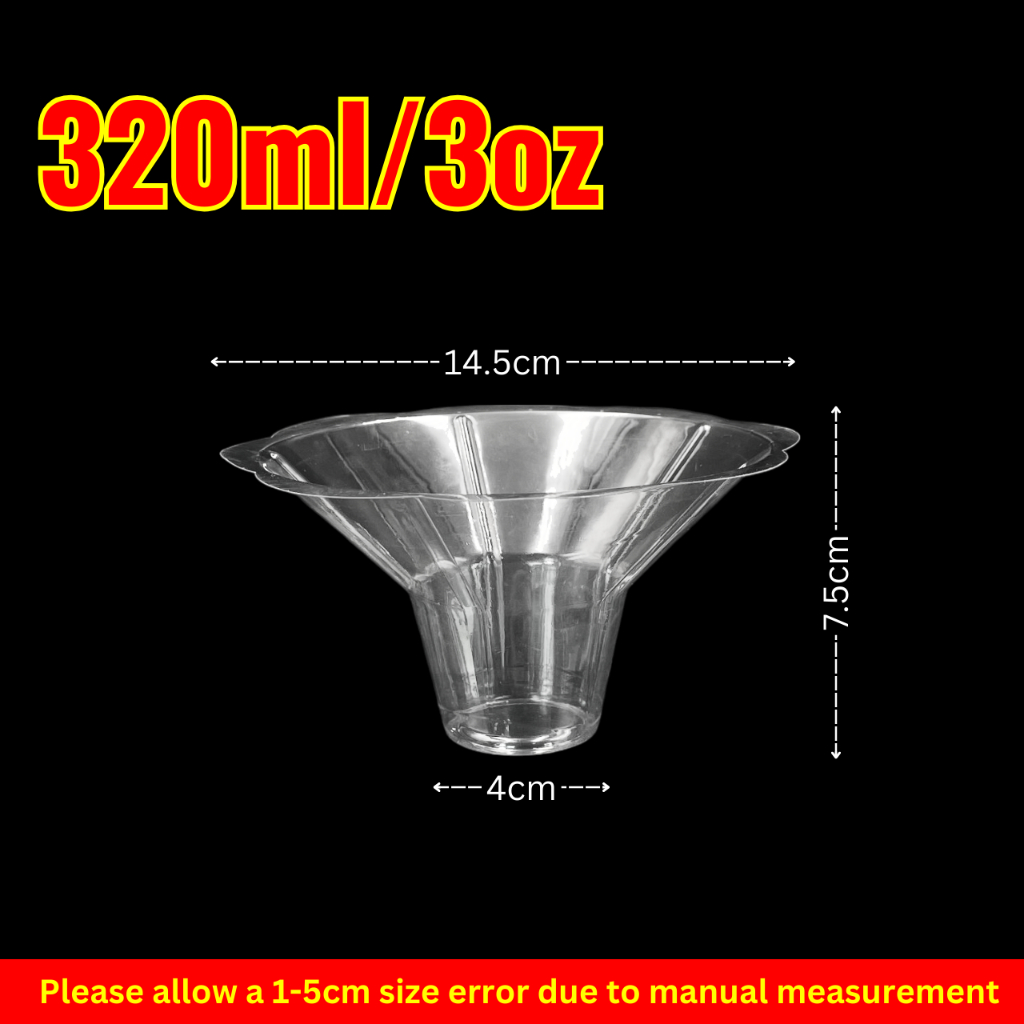 50pcs 320ml Disposable Flower Cup Ice Shaved Cup Plastic Clear Yogurt Snow Cone Ice Cream Cup