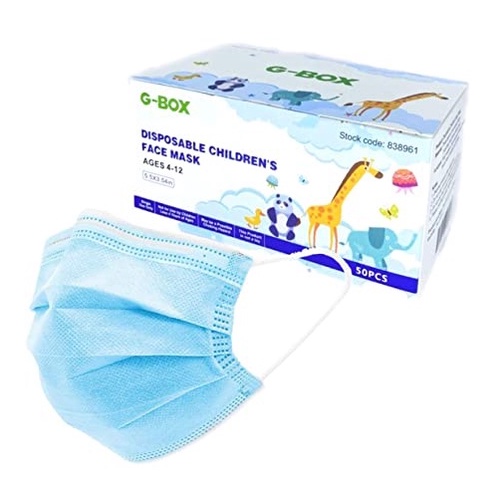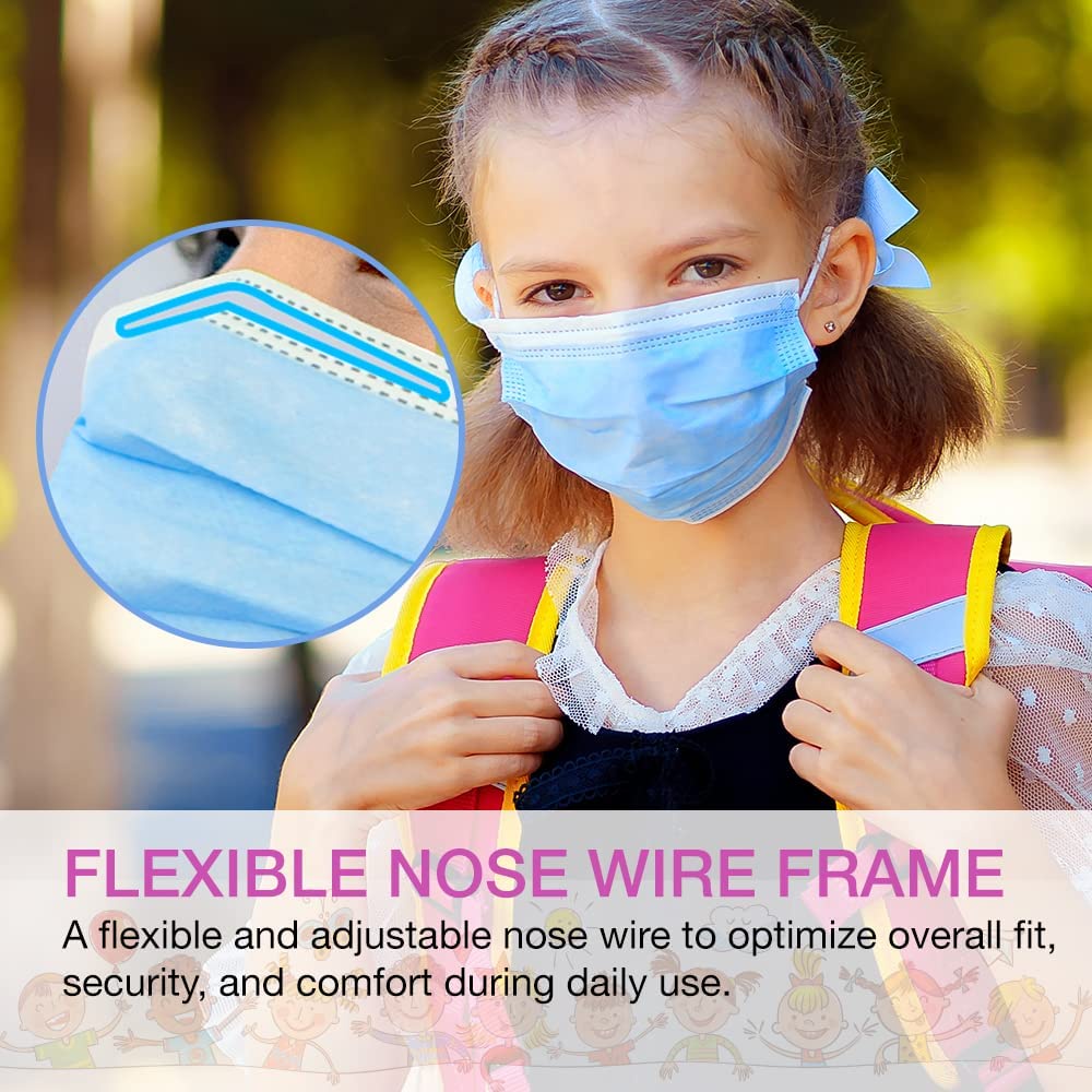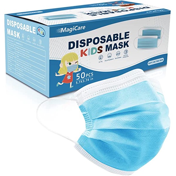 50pcs 3ply Plain Blue Disposable face Mask for Kids - White Face Mask for Kids Colored Mask for Kids