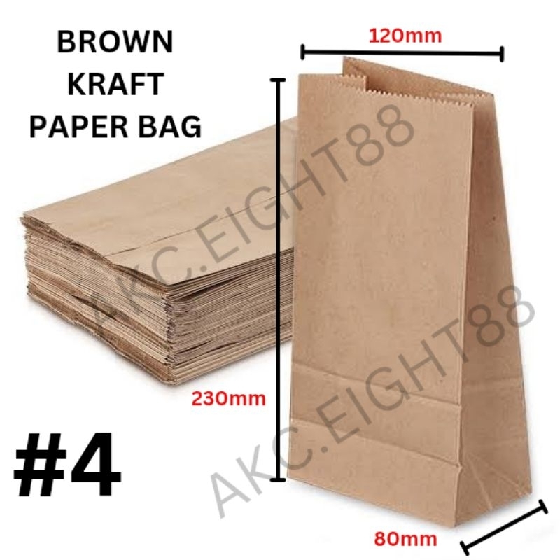 50pcs - Brown Paper Bag Kraft Paper Bag Gift Wrap Bag Pandesal Paper All Sizes 53gsm