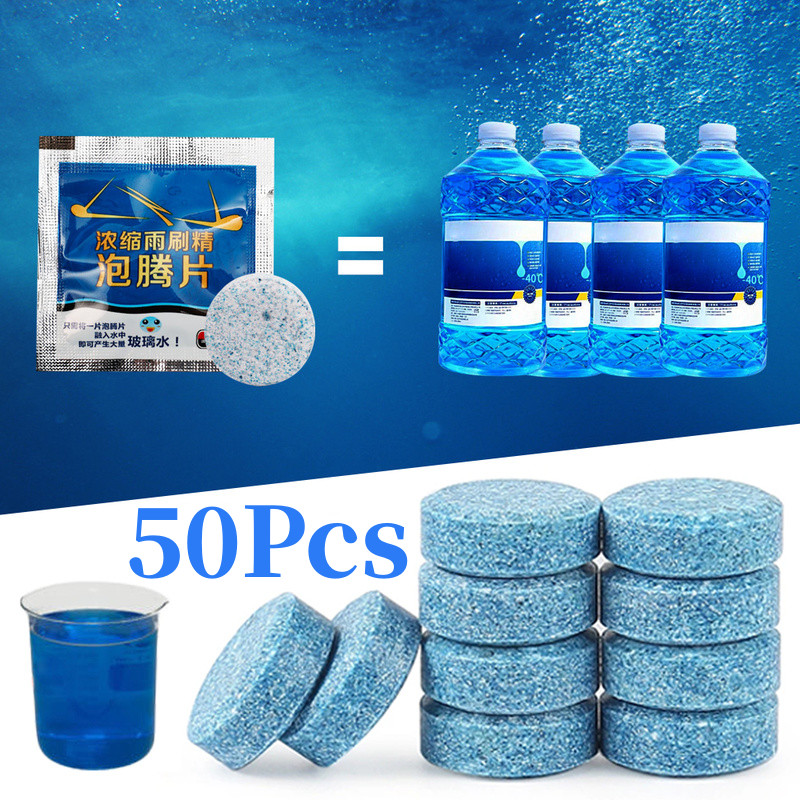 50pcs Car Windshield Washer Fluid Concentrated Clean Tablets,New Formula Windshield Wiper Fluid Solid Effervescent Tablet, Remove Glass Stains,Clear Vision