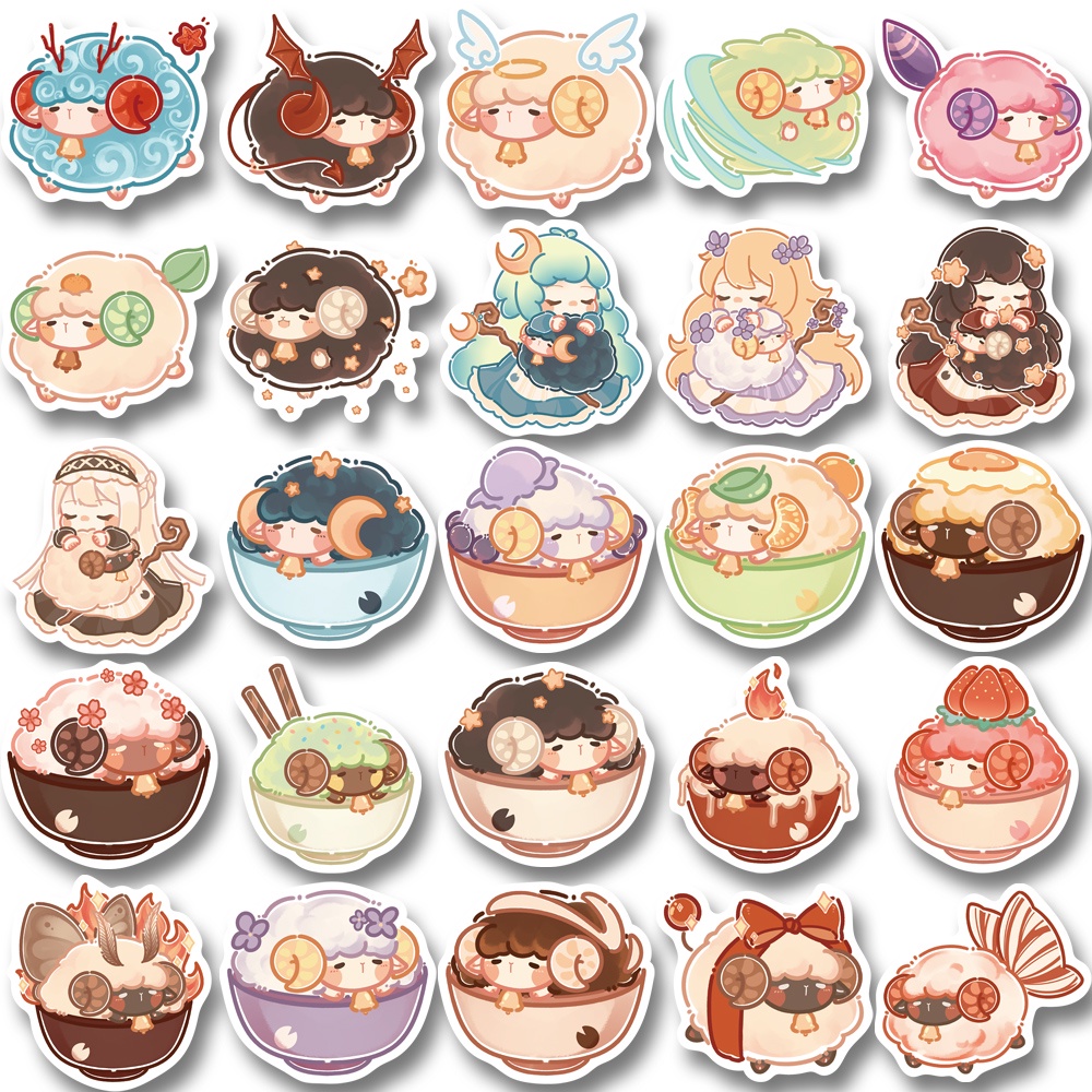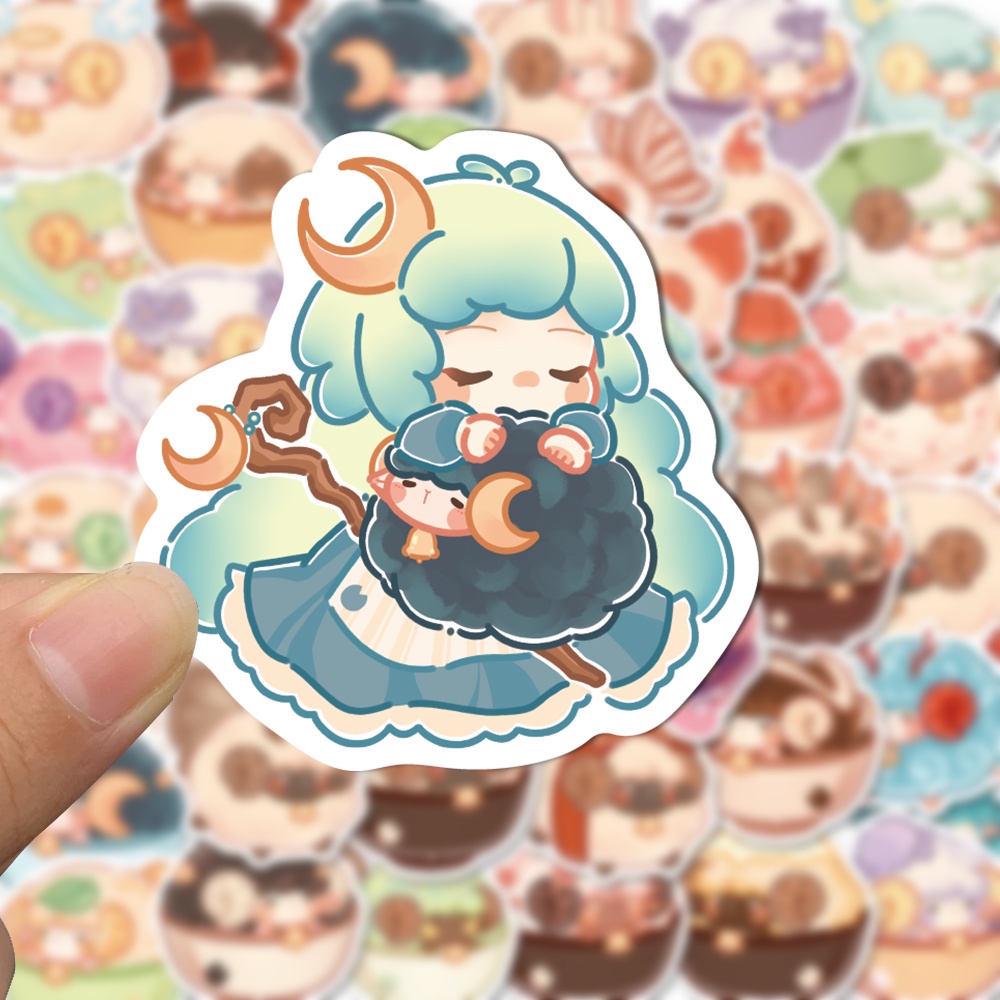 50pcs Cartoon cute Magic lamb Stickers Water Cup Laptop Decorative Cartoon Waterproof Stickers No repetition