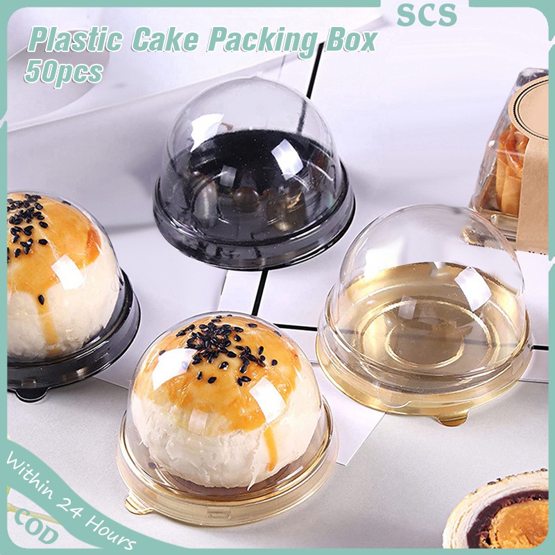 50pcs Clear Plastic Cake Packing Boxes Round Cupcake Holders Egg-Yolk Puff Mooncake Packing Box
