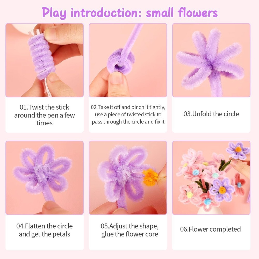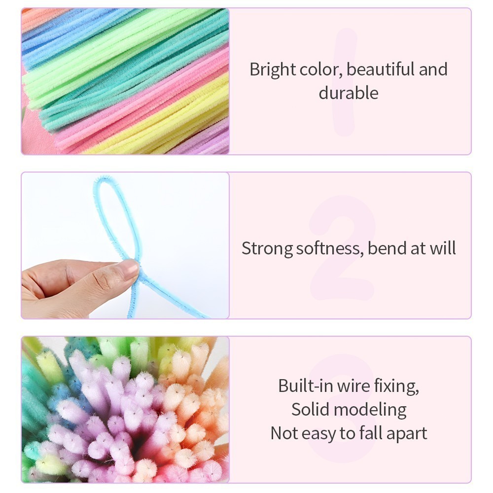 50pcs Colorful Dense fuzzy wire pipe cleaner craft flower Chenille Stem Children's Handmade DIY